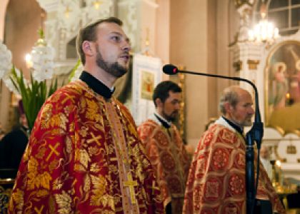 Всечесний отче Олеже!Я щиро дякую Вам за вітання! Справді, як Ви зауважили, свій День Тезоіменитства цьогоріч я зустрічаю не в кафедрі, а приїхав святкувати до вас. І мені, зауажу, дуже приємно молитися сьогодні разом із духовенством і вірянами Перемишлянщини!