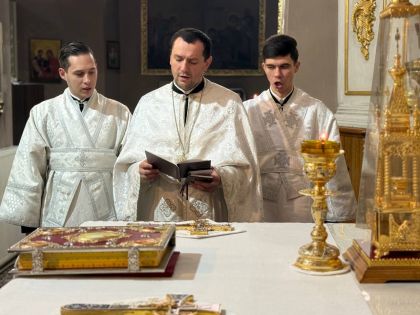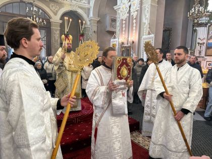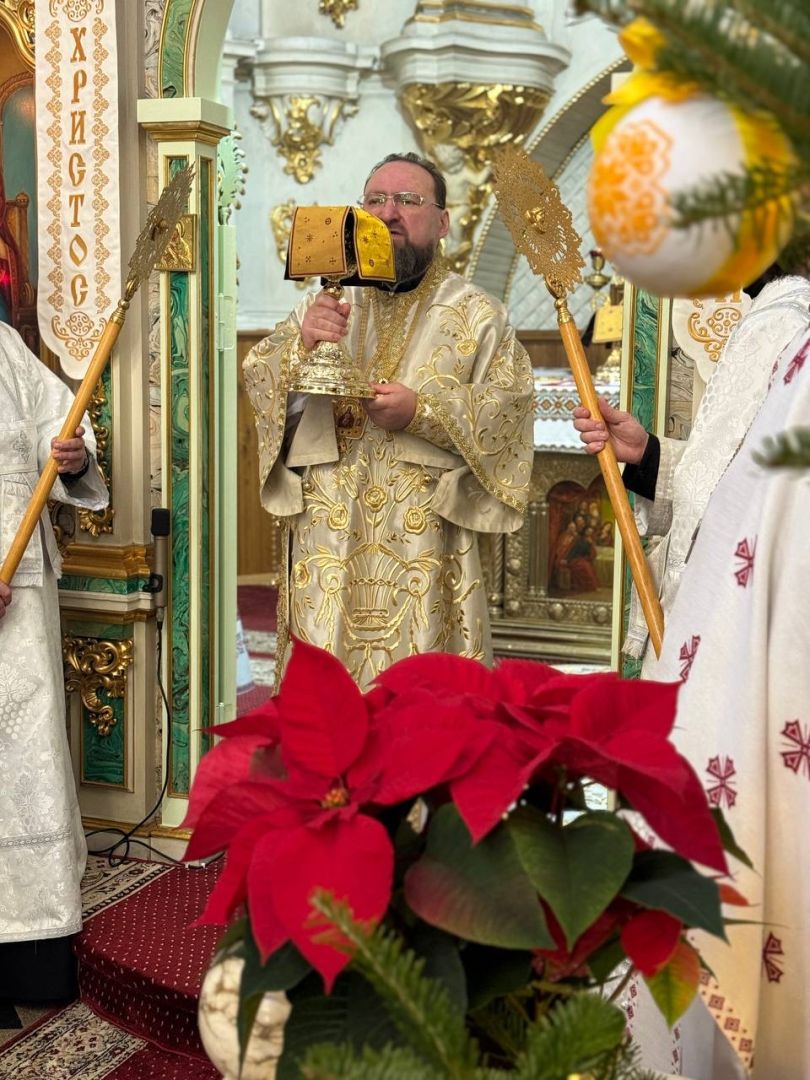 За святковою відправою Архієрею співслужили клірики собору, а також духовенство єпархії.