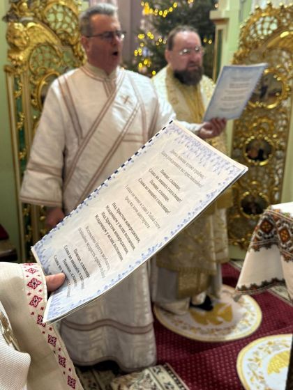 Після Євангельського читання Архіпастир зачитав вірянам Різдвяне послання митрополита Київського і всієї України Епіфанія та підніс особливу молитву за визволення України від нашестя чужинців.