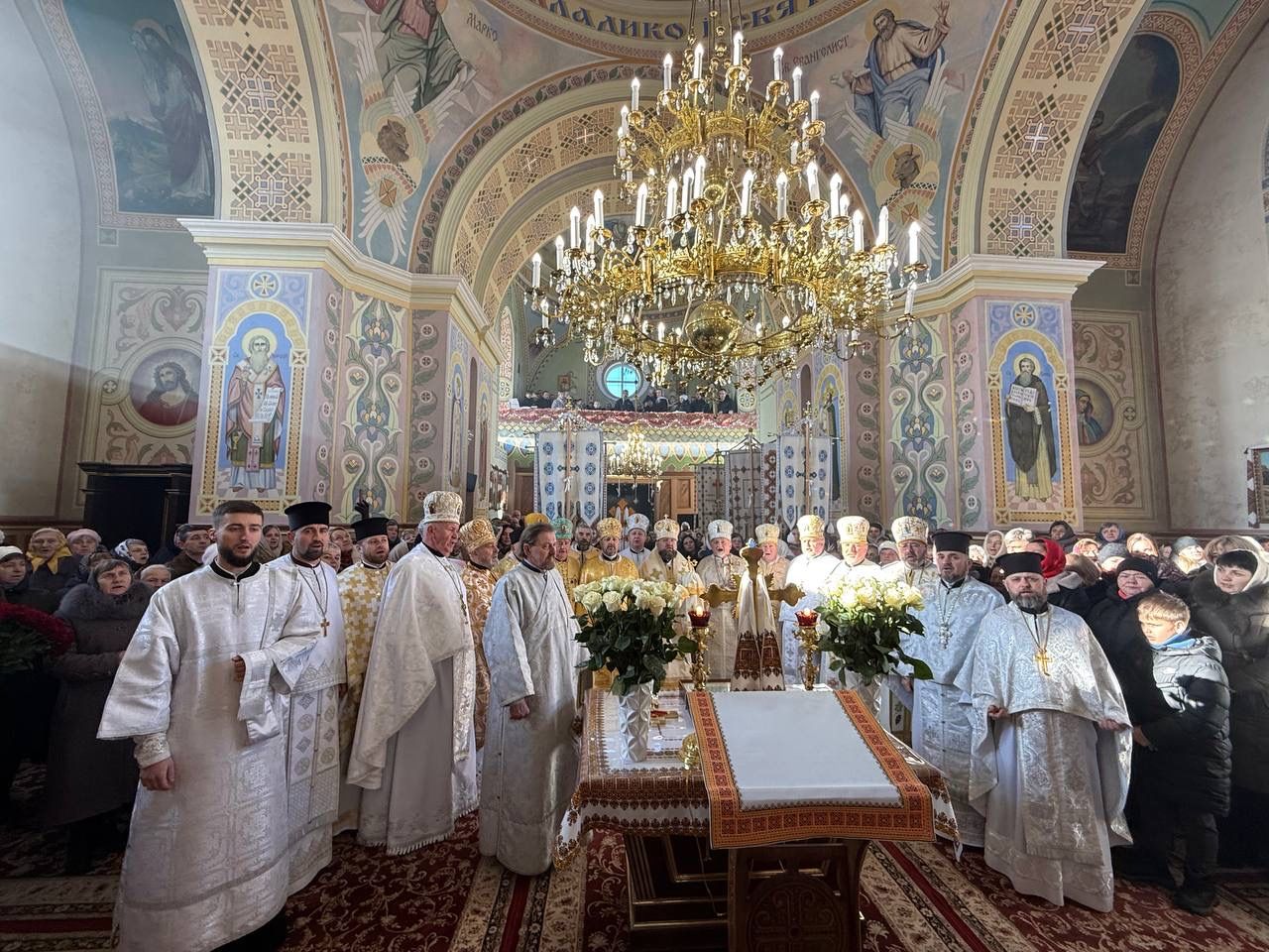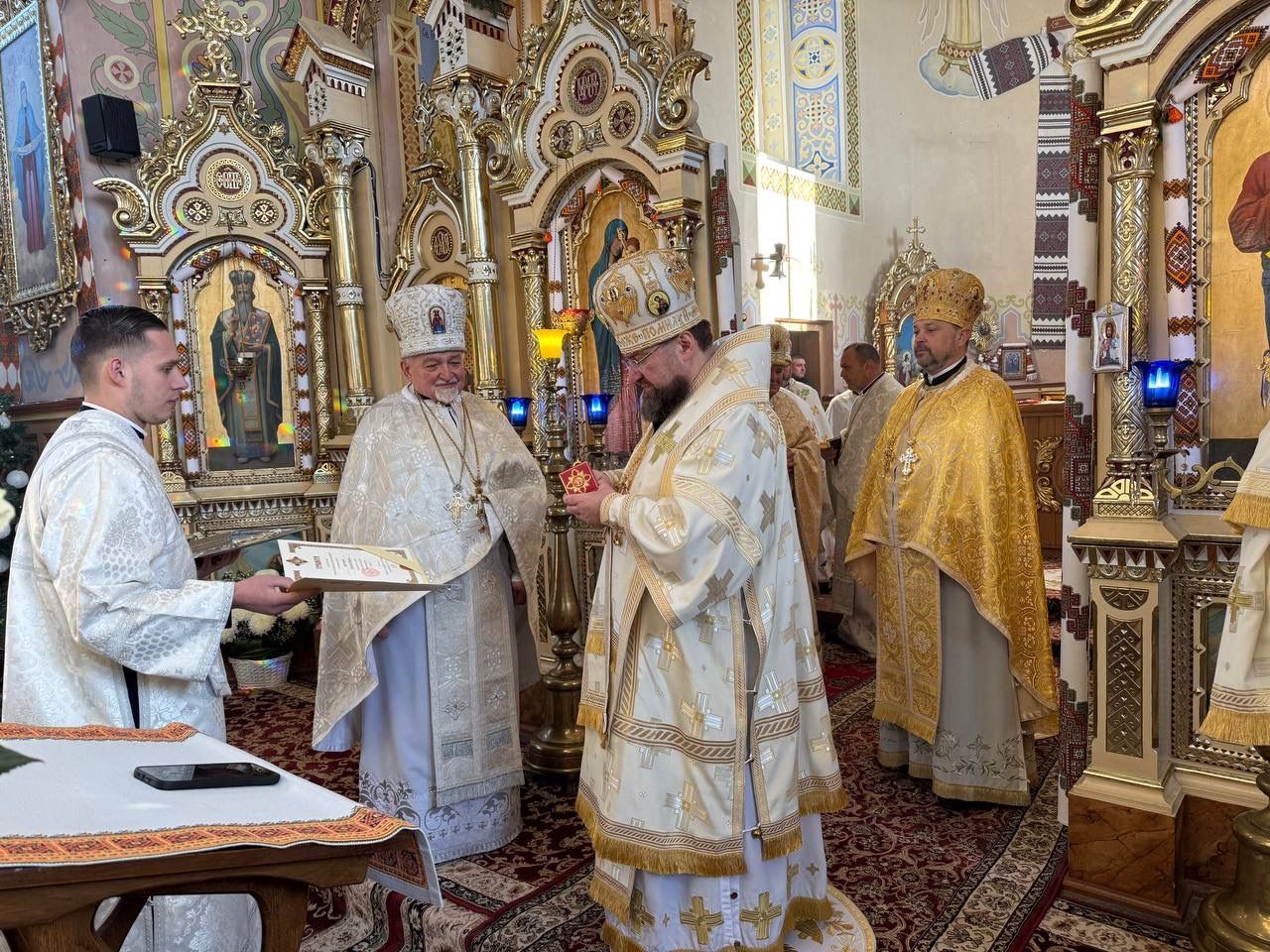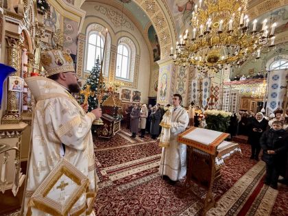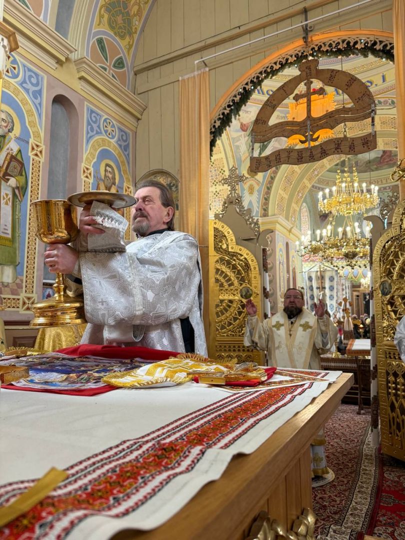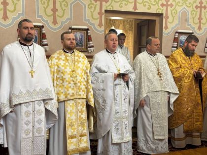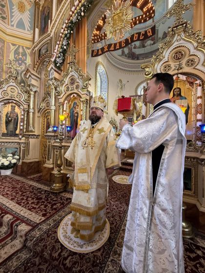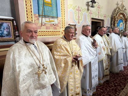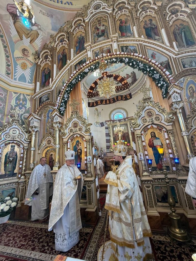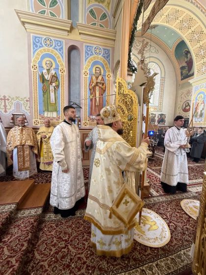 За святковою Божественною Літургією Владиці співслужили: секретар єпархіального управління, настоятель Львівського храму ікони Божої Матері "Всецариці", протоієрей Володимир Бачинський; Кам’янка-Бузький благочинний, настоятель Хресто-Воздвиженського храму с. Велике Колодно та храму Святого Пророка Іллі с. Колоденці, протоієрей Ярослав Шикула; настоятель храму Воскресіння Христового с. Дідилів, протоієрей Іван Бачало; настоятель Свято-Покровського храму с. Горпин, протоієрей Степан Михалко; настоятель храму святих апостолів Петра і Павла м. Добротвір, протоієрей Микола Предко; настоятель храму Успіння Пресвятої Богородиці с.Жовтанці, протоієрей Ярослав Тищак; настоятель храму Святої Трійці с. Дернів, протоієрей Нестор Сильвестер; настоятель храму Святого Архистратига Михаїла с.Нагірці, протоієрей Миколай Кекляк; настоятель храму Собору Пресвятої Богородиці с. Ременів, протоієрей Михайло Пасірський; настоятель храму Великомученика Димитрія с.Печихвости, протоієрей Василь Бачало; настоятель храму Преображення Господнього м. Шептицький, протоієрей Володимир Ортинський; настоятель храму Різдва Пресвятої Богородиці м. Кам‘янка-Бузька, протоієрей Володимир Котоус; настоятель храму Перенесення мощей Святителя Миколая с.Забужжя, протоієрей Миколай Єрмішин; настоятель храму Покрова Пресвятої Богородиці с. Зубів Міст та Свято-Троїцького храму м.Кам’янка-Бузька, протоієрей Ігор Андрейчук; настоятель храму Воскресіння Христового с. Желдець та храму Архистратига Божого Михаїла с.Воля-Жовтанецька, протоієрей Іван Гунько; настоятель храму Святого Великомученика і Цілителя Пантелеймона м. Кам’янка-бузька, протоієрей Андрій Гермак; настоятель храму Святителя Миколая Чудотворця с.Честині, протоієрей Іван Чемерис; протодиякон Свято-Покровського кафедрального собору Семен Пігура; диякон Орест Палько; диякон Созонт Тищак.