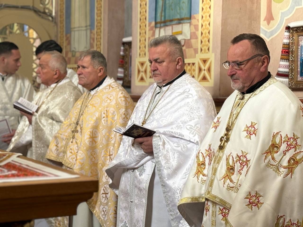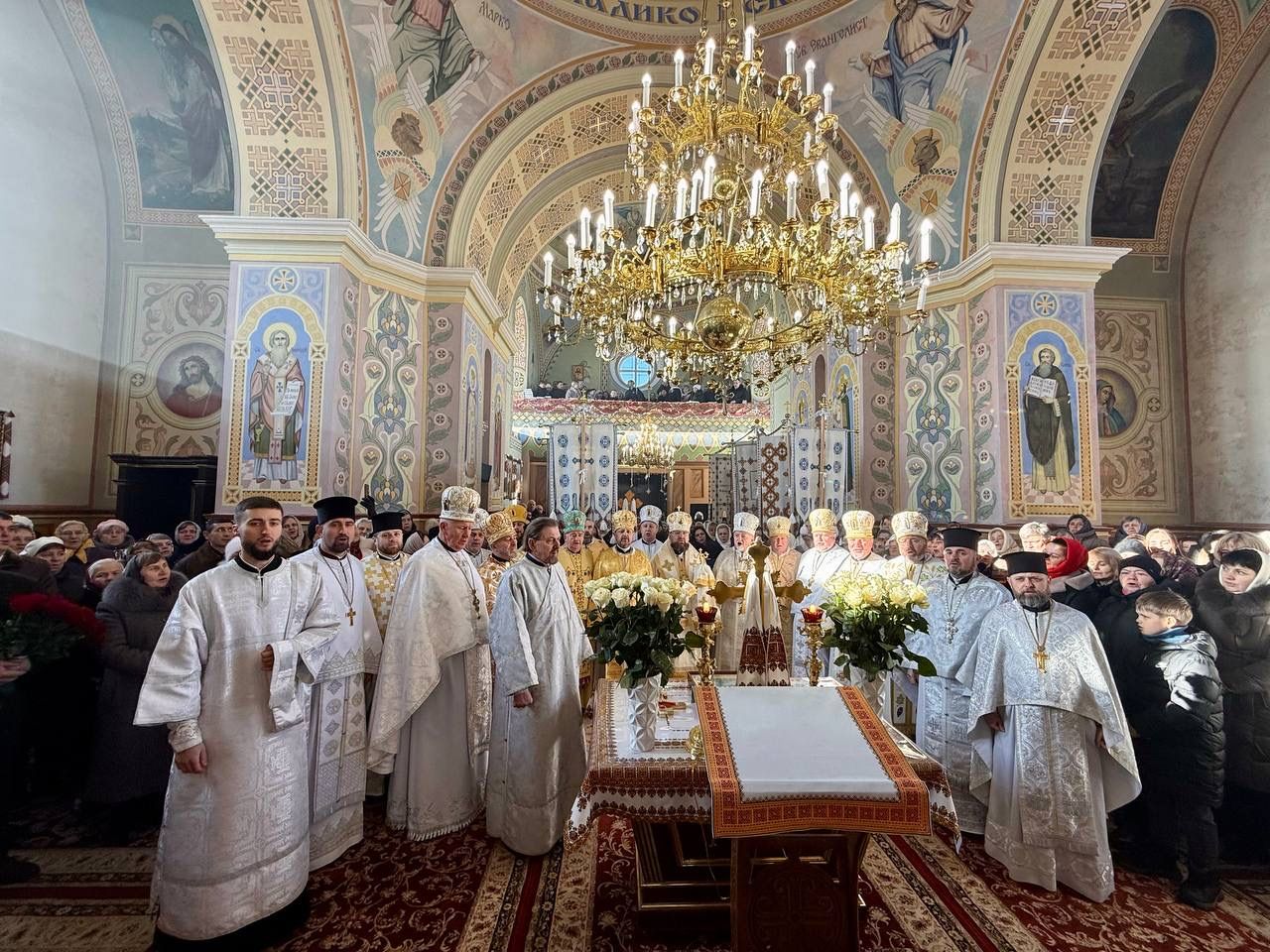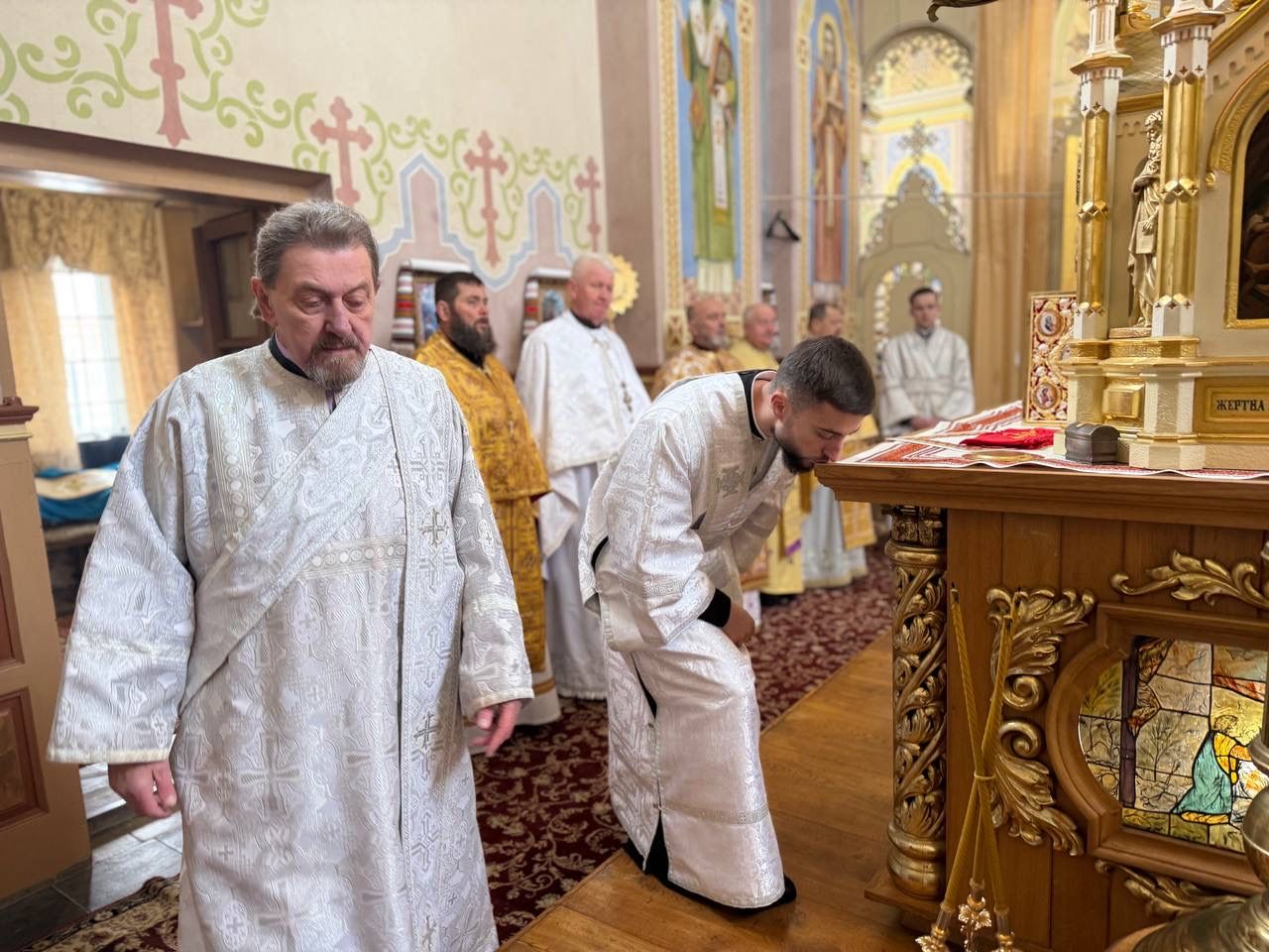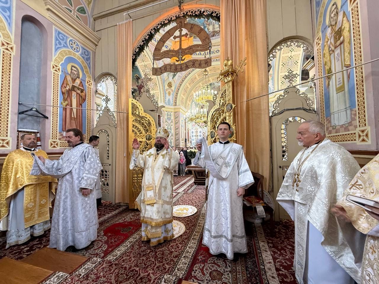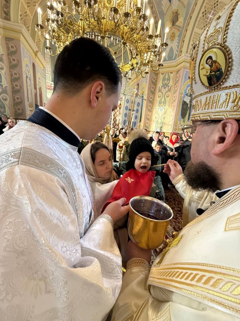 За святковою Божественною Літургією Владиці співслужили: секретар єпархіального управління, настоятель Львівського храму ікони Божої Матері "Всецариці", протоієрей Володимир Бачинський; Кам’янка-Бузький благочинний, настоятель Хресто-Воздвиженського храму с. Велике Колодно та храму Святого Пророка Іллі с. Колоденці, протоієрей Ярослав Шикула; настоятель храму Воскресіння Христового с. Дідилів, протоієрей Іван Бачало; настоятель Свято-Покровського храму с. Горпин, протоієрей Степан Михалко; настоятель храму святих апостолів Петра і Павла м. Добротвір, протоієрей Микола Предко; настоятель храму Успіння Пресвятої Богородиці с.Жовтанці, протоієрей Ярослав Тищак; настоятель храму Святої Трійці с. Дернів, протоієрей Нестор Сильвестер; настоятель храму Святого Архистратига Михаїла с.Нагірці, протоієрей Миколай Кекляк; настоятель храму Собору Пресвятої Богородиці с. Ременів, протоієрей Михайло Пасірський; настоятель храму Великомученика Димитрія с.Печихвости, протоієрей Василь Бачало; настоятель храму Преображення Господнього м. Шептицький, протоієрей Володимир Ортинський; настоятель храму Різдва Пресвятої Богородиці м. Кам‘янка-Бузька, протоієрей Володимир Котоус; настоятель храму Перенесення мощей Святителя Миколая с.Забужжя, протоієрей Миколай Єрмішин; настоятель храму Покрова Пресвятої Богородиці с. Зубів Міст та Свято-Троїцького храму м.Кам’янка-Бузька, протоієрей Ігор Андрейчук; настоятель храму Воскресіння Христового с. Желдець та храму Архистратига Божого Михаїла с.Воля-Жовтанецька, протоієрей Іван Гунько; настоятель храму Святого Великомученика і Цілителя Пантелеймона м. Кам’янка-бузька, протоієрей Андрій Гермак; настоятель храму Святителя Миколая Чудотворця с.Честині, протоієрей Іван Чемерис; протодиякон Свято-Покровського кафедрального собору Семен Пігура; диякон Орест Палько; диякон Созонт Тищак.
