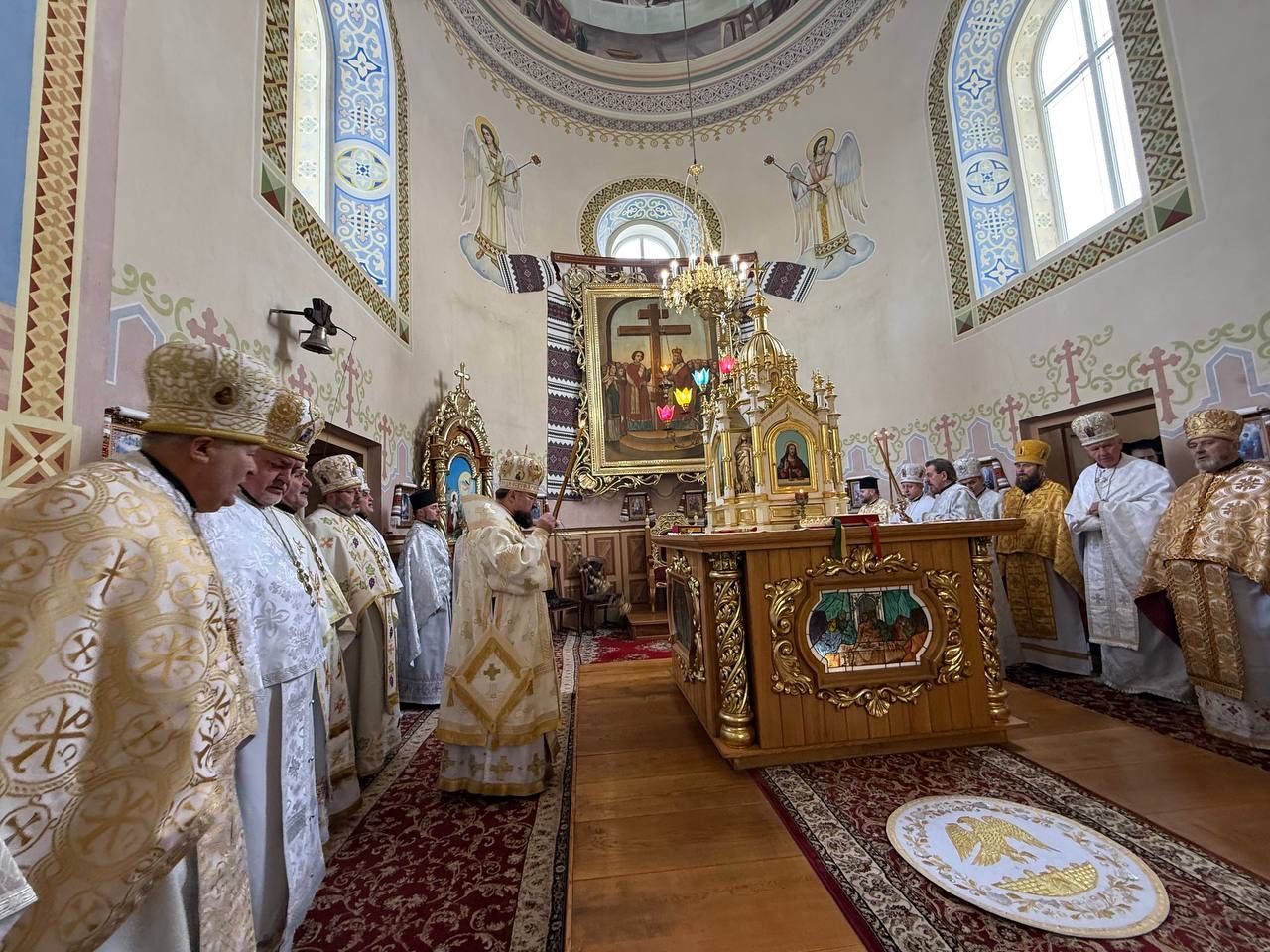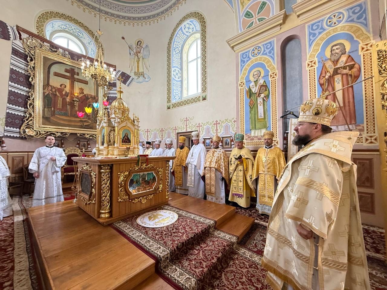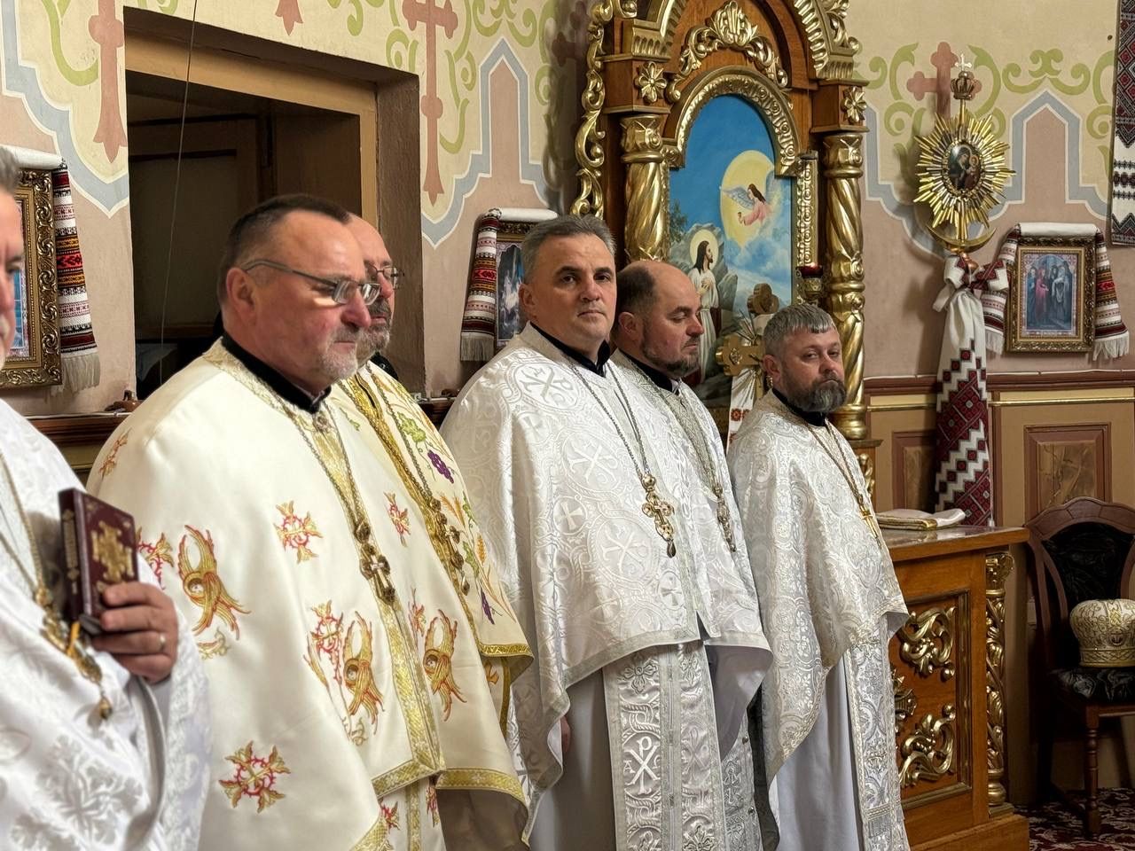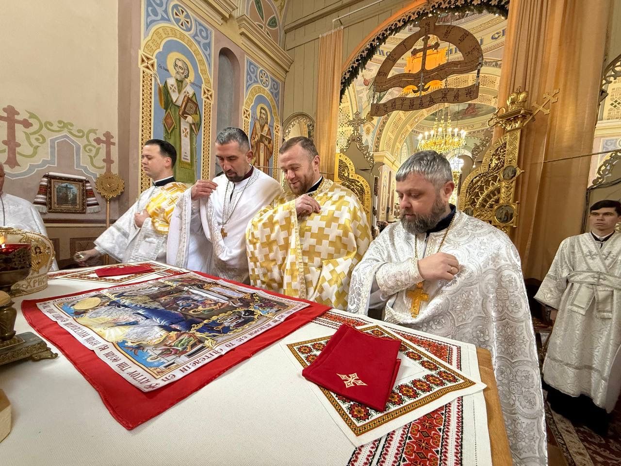 За святковою Божественною Літургією Владиці співслужили: секретар єпархіального управління, настоятель Львівського храму ікони Божої Матері "Всецариці", протоієрей Володимир Бачинський; Кам’янка-Бузький благочинний, настоятель Хресто-Воздвиженського храму с. Велике Колодно та храму Святого Пророка Іллі с. Колоденці, протоієрей Ярослав Шикула; настоятель храму Воскресіння Христового с. Дідилів, протоієрей Іван Бачало; настоятель Свято-Покровського храму с. Горпин, протоієрей Степан Михалко; настоятель храму святих апостолів Петра і Павла м. Добротвір, протоієрей Микола Предко; настоятель храму Успіння Пресвятої Богородиці с.Жовтанці, протоієрей Ярослав Тищак; настоятель храму Святої Трійці с. Дернів, протоієрей Нестор Сильвестер; настоятель храму Святого Архистратига Михаїла с.Нагірці, протоієрей Миколай Кекляк; настоятель храму Собору Пресвятої Богородиці с. Ременів, протоієрей Михайло Пасірський; настоятель храму Великомученика Димитрія с.Печихвости, протоієрей Василь Бачало; настоятель храму Преображення Господнього м. Шептицький, протоієрей Володимир Ортинський; настоятель храму Різдва Пресвятої Богородиці м. Кам‘янка-Бузька, протоієрей Володимир Котоус; настоятель храму Перенесення мощей Святителя Миколая с.Забужжя, протоієрей Миколай Єрмішин; настоятель храму Покрова Пресвятої Богородиці с. Зубів Міст та Свято-Троїцького храму м.Кам’янка-Бузька, протоієрей Ігор Андрейчук; настоятель храму Воскресіння Христового с. Желдець та храму Архистратига Божого Михаїла с.Воля-Жовтанецька, протоієрей Іван Гунько; настоятель храму Святого Великомученика і Цілителя Пантелеймона м. Кам’янка-бузька, протоієрей Андрій Гермак; настоятель храму Святителя Миколая Чудотворця с.Честині, протоієрей Іван Чемерис; протодиякон Свято-Покровського кафедрального собору Семен Пігура; диякон Орест Палько; диякон Созонт Тищак.