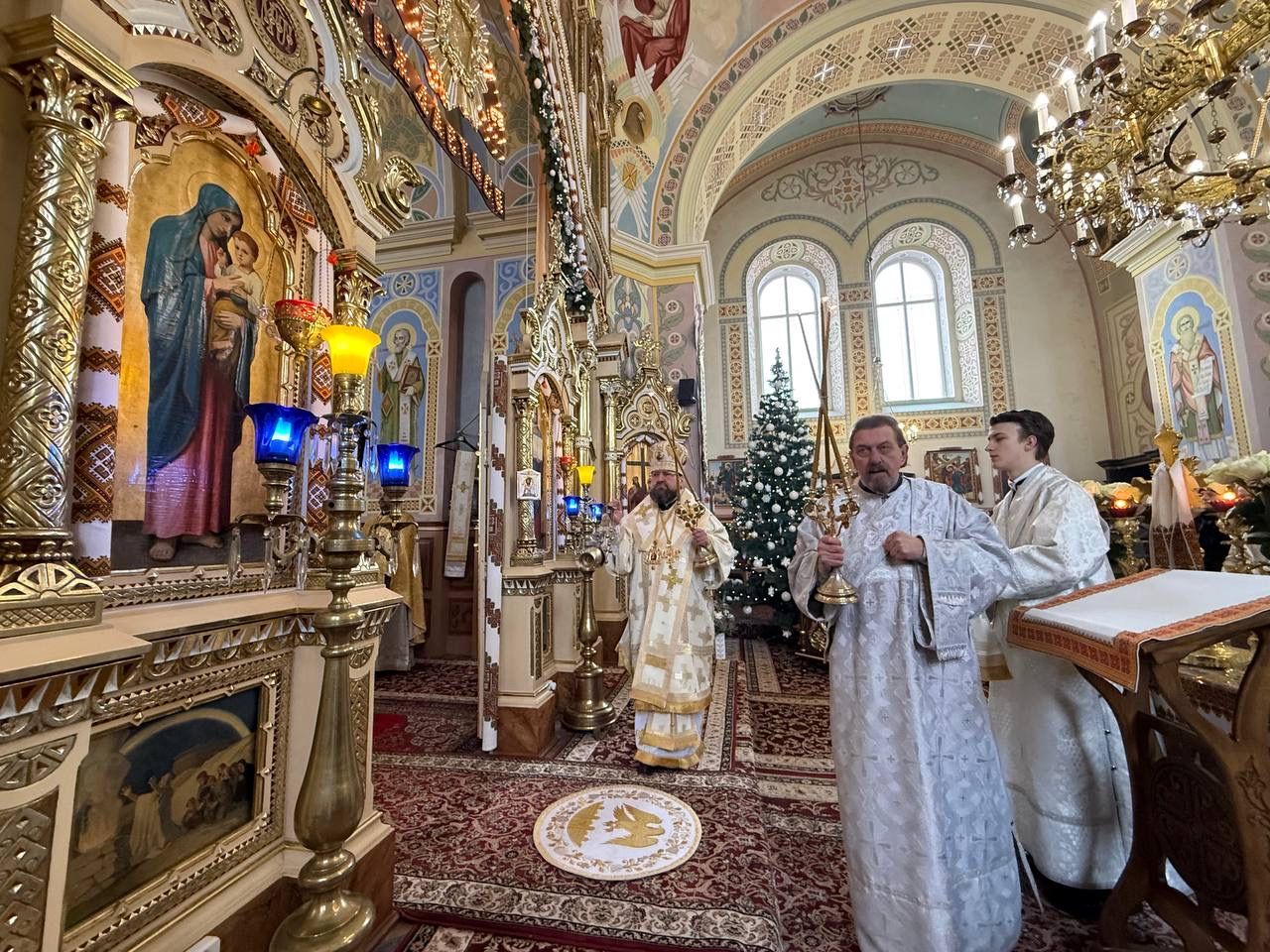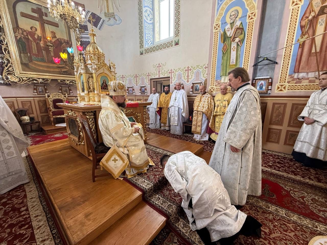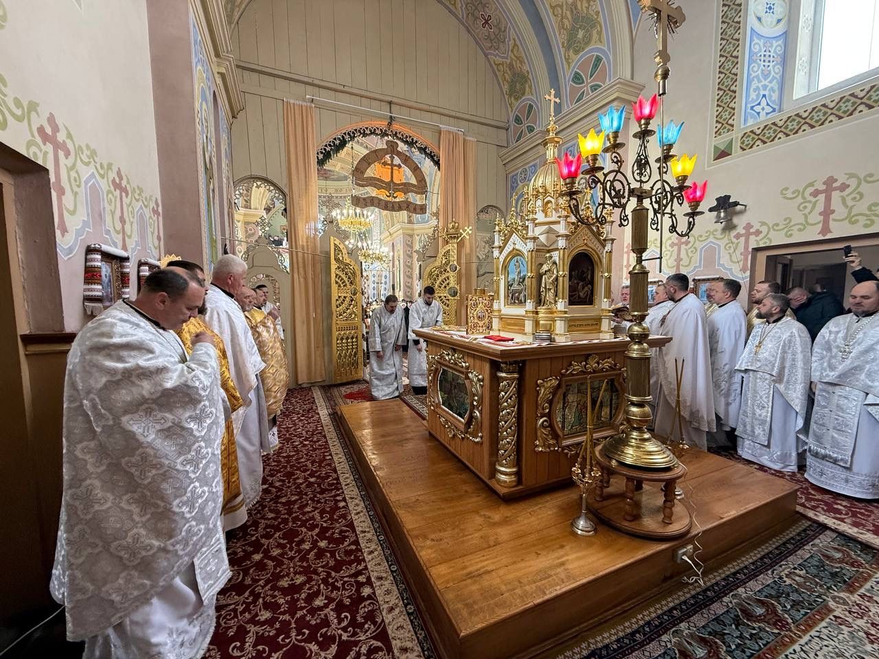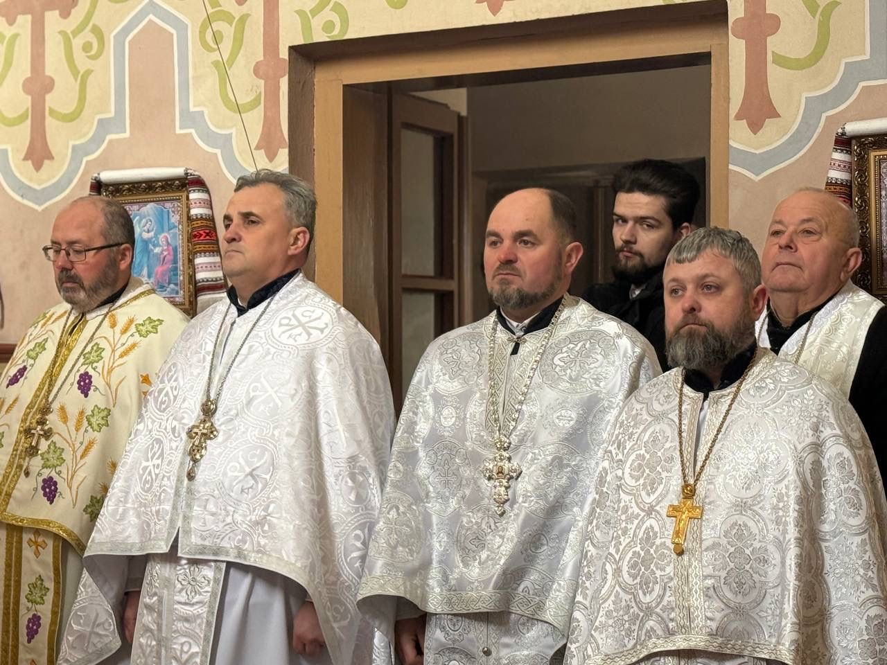 За святковою Божественною Літургією Владиці співслужили: секретар єпархіального управління, настоятель Львівського храму ікони Божої Матері "Всецариці", протоієрей Володимир Бачинський; Кам’янка-Бузький благочинний, настоятель Хресто-Воздвиженського храму с. Велике Колодно та храму Святого Пророка Іллі с. Колоденці, протоієрей Ярослав Шикула; настоятель храму Воскресіння Христового с. Дідилів, протоієрей Іван Бачало; настоятель Свято-Покровського храму с. Горпин, протоієрей Степан Михалко; настоятель храму святих апостолів Петра і Павла м. Добротвір, протоієрей Микола Предко; настоятель храму Успіння Пресвятої Богородиці с.Жовтанці, протоієрей Ярослав Тищак; настоятель храму Святої Трійці с. Дернів, протоієрей Нестор Сильвестер; настоятель храму Святого Архистратига Михаїла с.Нагірці, протоієрей Миколай Кекляк; настоятель храму Собору Пресвятої Богородиці с. Ременів, протоієрей Михайло Пасірський; настоятель храму Великомученика Димитрія с.Печихвости, протоієрей Василь Бачало; настоятель храму Преображення Господнього м. Шептицький, протоієрей Володимир Ортинський; настоятель храму Різдва Пресвятої Богородиці м. Кам‘янка-Бузька, протоієрей Володимир Котоус; настоятель храму Перенесення мощей Святителя Миколая с.Забужжя, протоієрей Миколай Єрмішин; настоятель храму Покрова Пресвятої Богородиці с. Зубів Міст та Свято-Троїцького храму м.Кам’янка-Бузька, протоієрей Ігор Андрейчук; настоятель храму Воскресіння Христового с. Желдець та храму Архистратига Божого Михаїла с.Воля-Жовтанецька, протоієрей Іван Гунько; настоятель храму Святого Великомученика і Цілителя Пантелеймона м. Кам’янка-бузька, протоієрей Андрій Гермак; настоятель храму Святителя Миколая Чудотворця с.Честині, протоієрей Іван Чемерис; протодиякон Свято-Покровського кафедрального собору Семен Пігура; диякон Орест Палько; диякон Созонт Тищак.