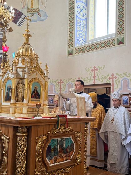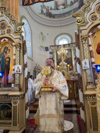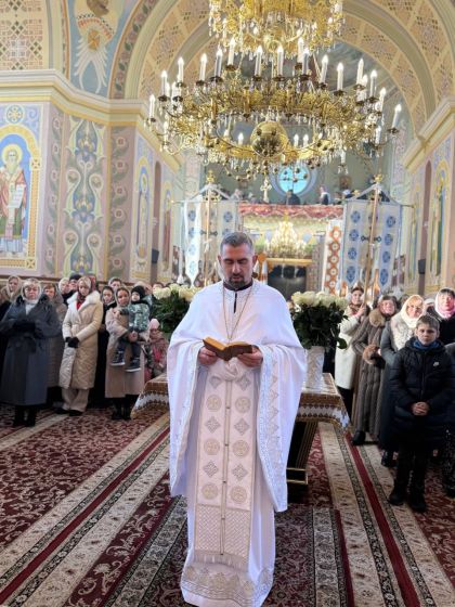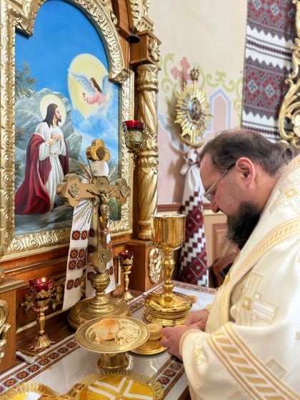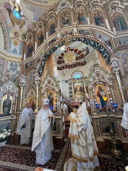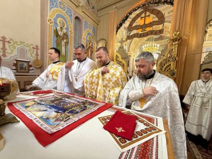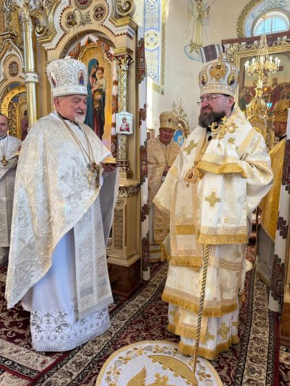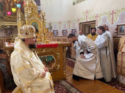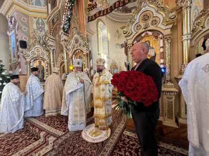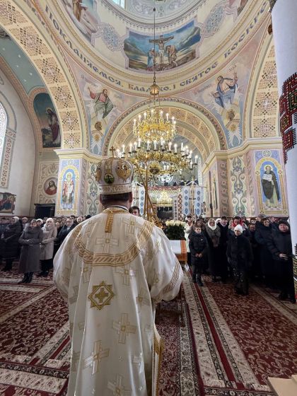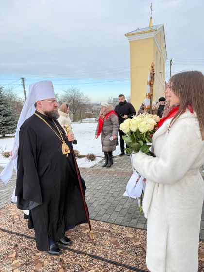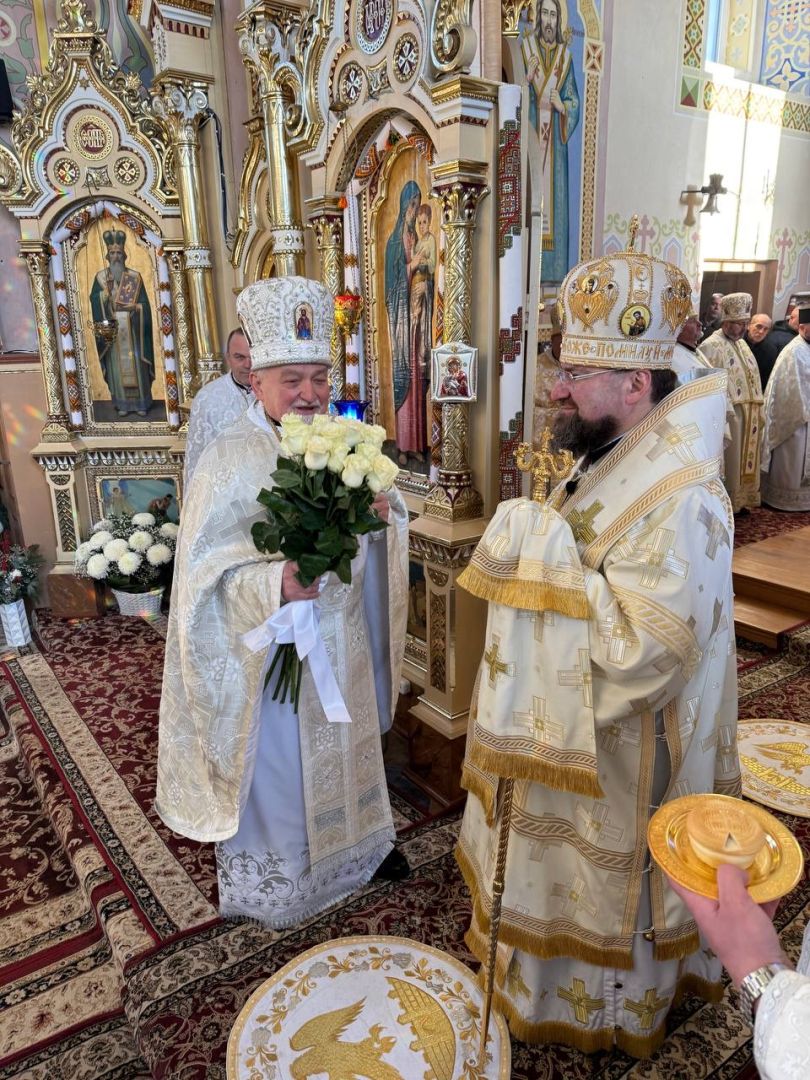 У свою чергу до керуючого єпархією зі словом подяки за відвідини парафії та звершене богослужіння звернувся настоятель храму, протоієрей Ярослав Шикула та підніс Архієрею просфору та квіти.
