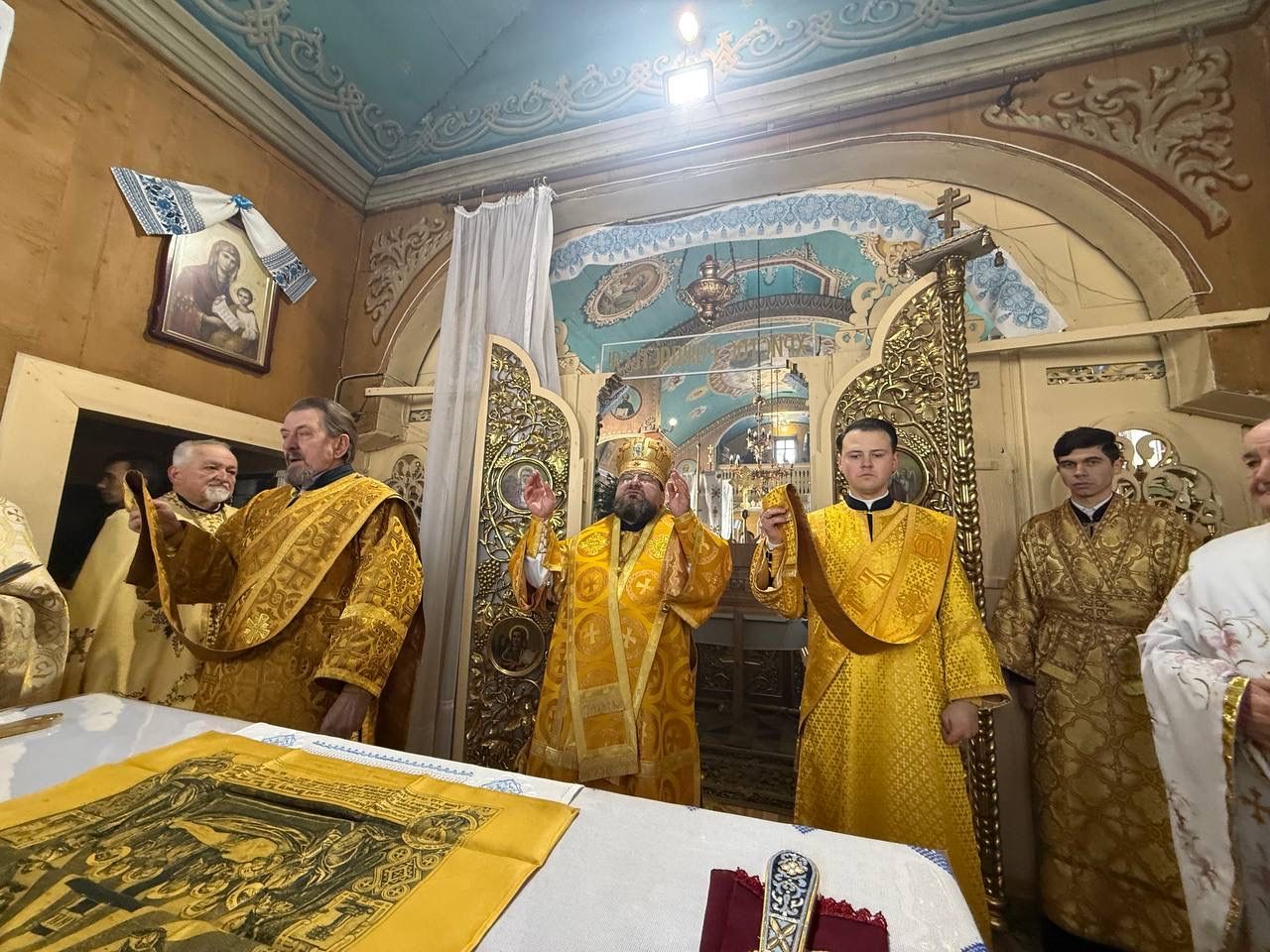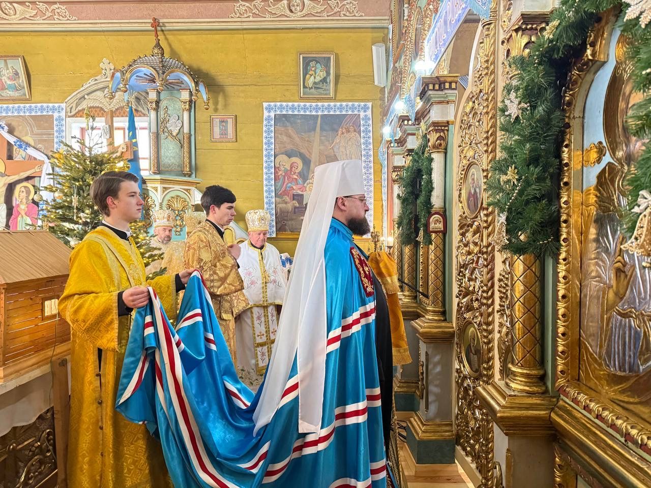 За Божественною Літургією Владиці співслужили: Кам’янка-Бузький благочинний, настоятель Хресто-Воздвиженського храму с. Велике Колодно та храму Святого Пророка Іллі с. Колоденці, протоієрей Ярослав Шикула; настоятель храму Воскресіння Христового с. Дідилів, протоієрей Іван Бачало; настоятель Свято-Покровського храму с. Горпин, протоієрей Степан Михалко; настоятель храму св. апп. Петра і Павла с. Старий Яричів, протоієрей Федір Домашовець; настоятель храму Різдва Пресвятої Богородиці, протоієрей Степан Лібич; сотрудник храму Воскресіння Господнього м. Золочів, протоієрей Ігор Проць; настоятель храму Святого Архистратига Михаїла с.Нагірці, протоієрей Миколай Кекляк; настоятель храму Великомученика Димитрія с.Печихвости, протоієрей Василь Бачало; настоятель храму Преображення Господнього с. Ясенівці, протоієрей Степан Проць; настоятель храму Святої Трійці м. Золочів, протоієрей Василь Проць; настоятель храму Успіння Пресвятої Богородиці м. Львова, протоієрей Андрій Скульський; настоятель храму Архістратига Михаїла с. Великі Передримихи, протоієрей Володимир Масюк (Львівська єпархія); сотрудник в храмі Воскресіння Христового с. Дідилів, протоієрей Іван Бачало; протодиякон Свято-Покровського кафедрального собору Семен Пігура; диякон Орест Палько.