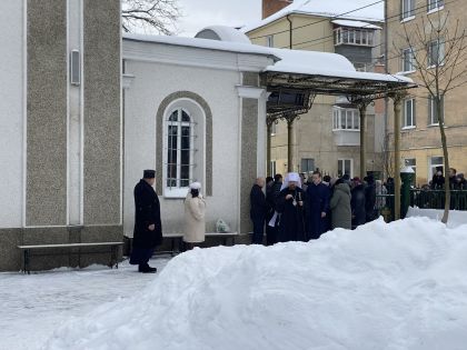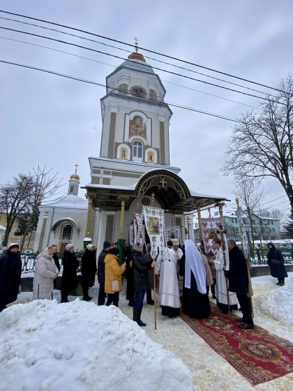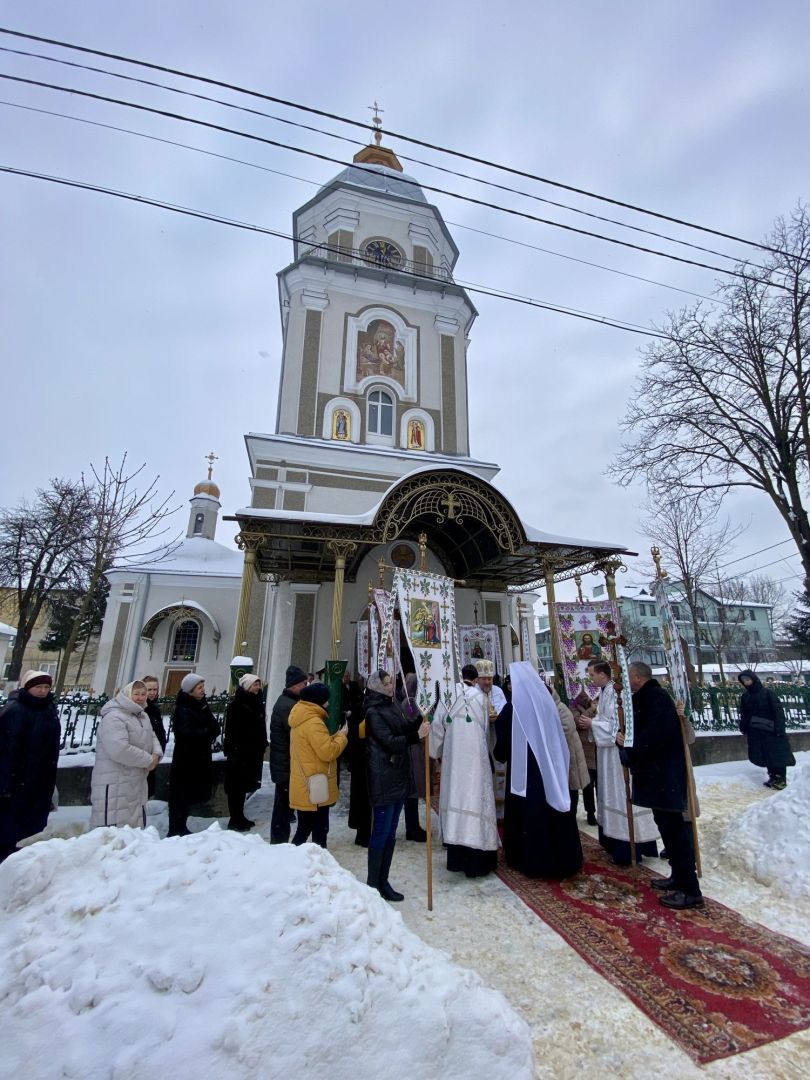 Перед входом до храму митрополита Димитрія з короваєм та вітаннями зустріли парафіяни, а в притворі Владику зі словами привітань зустрів настоятель храму, Бродівський благочинний, протоієрей Василій Шира.