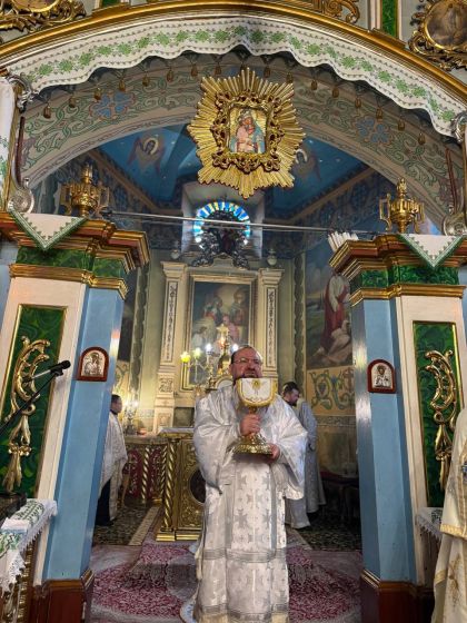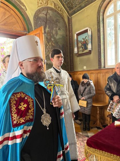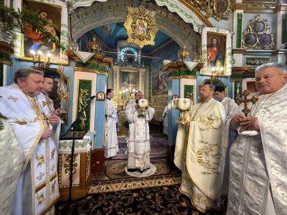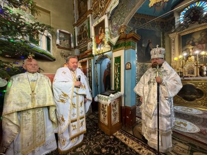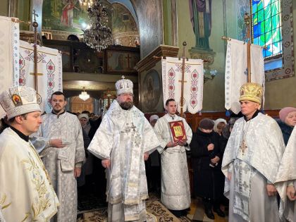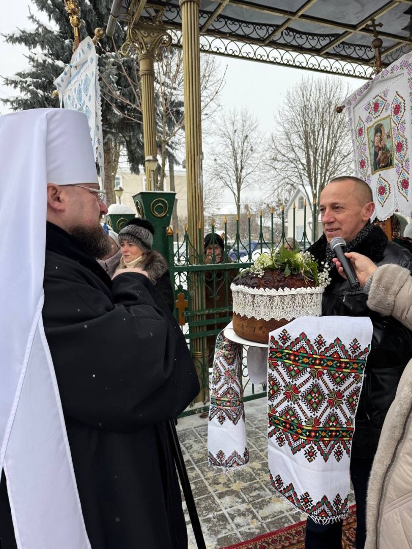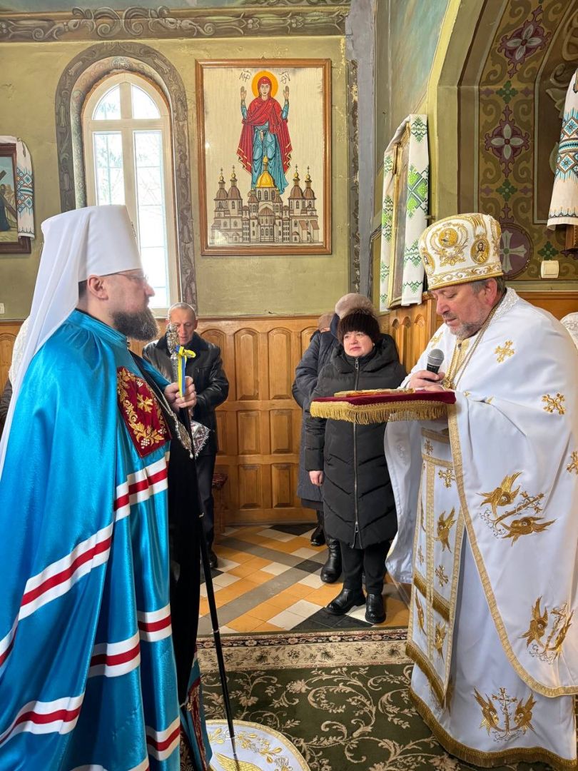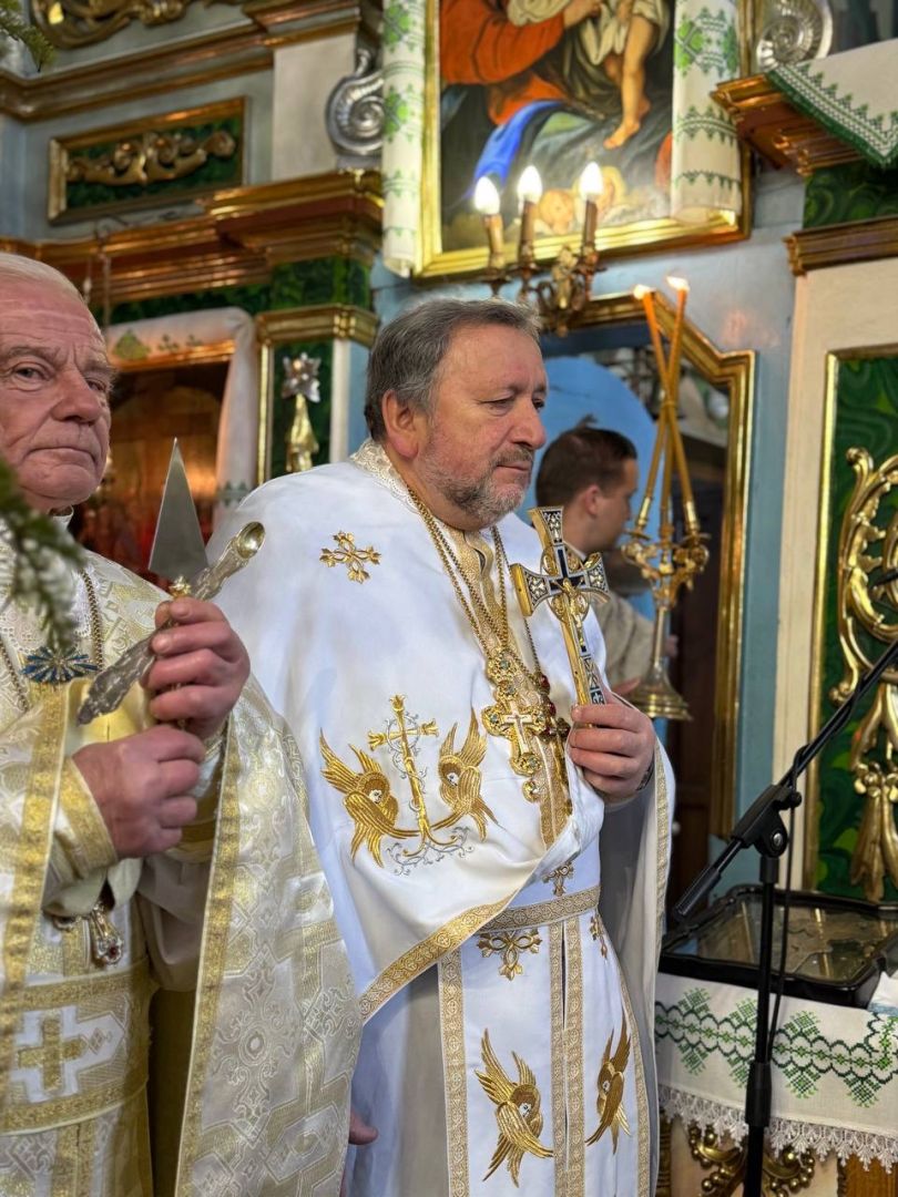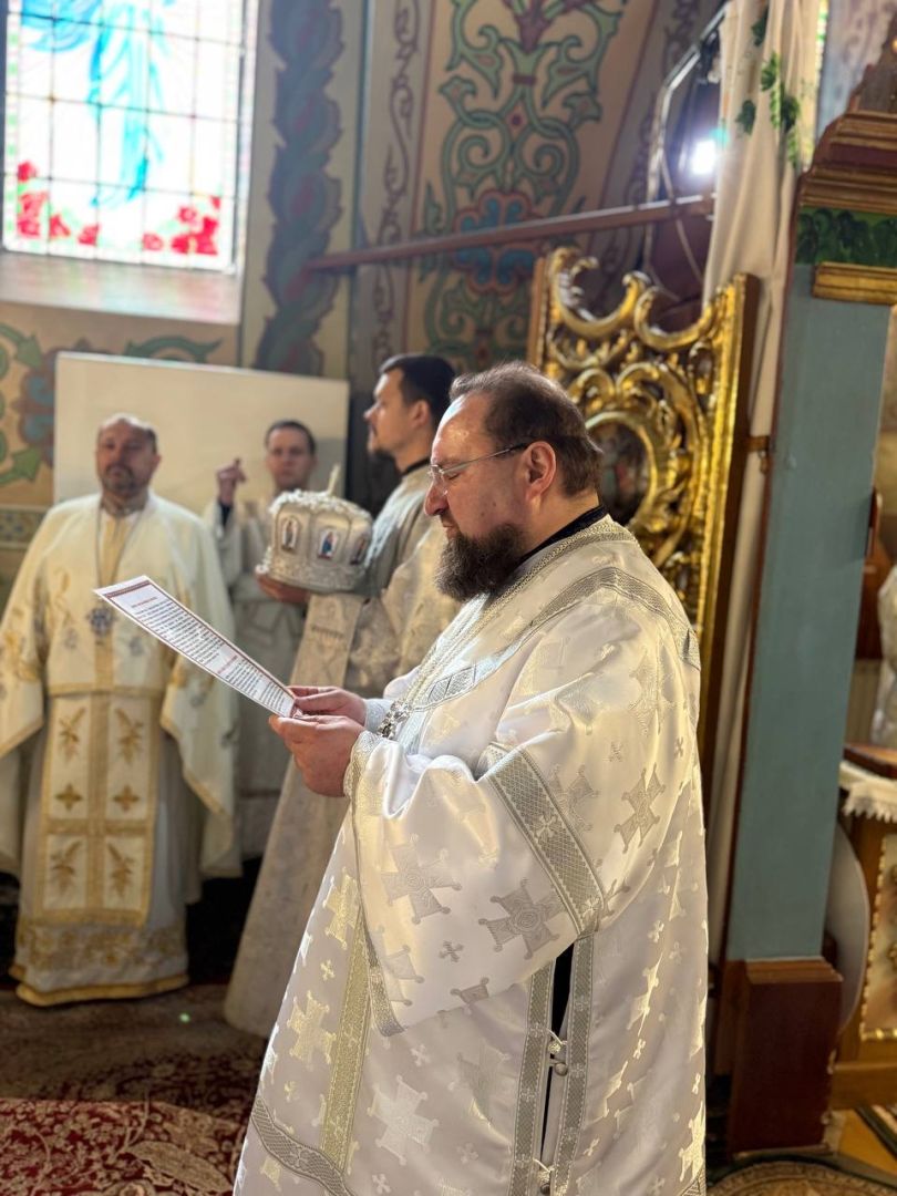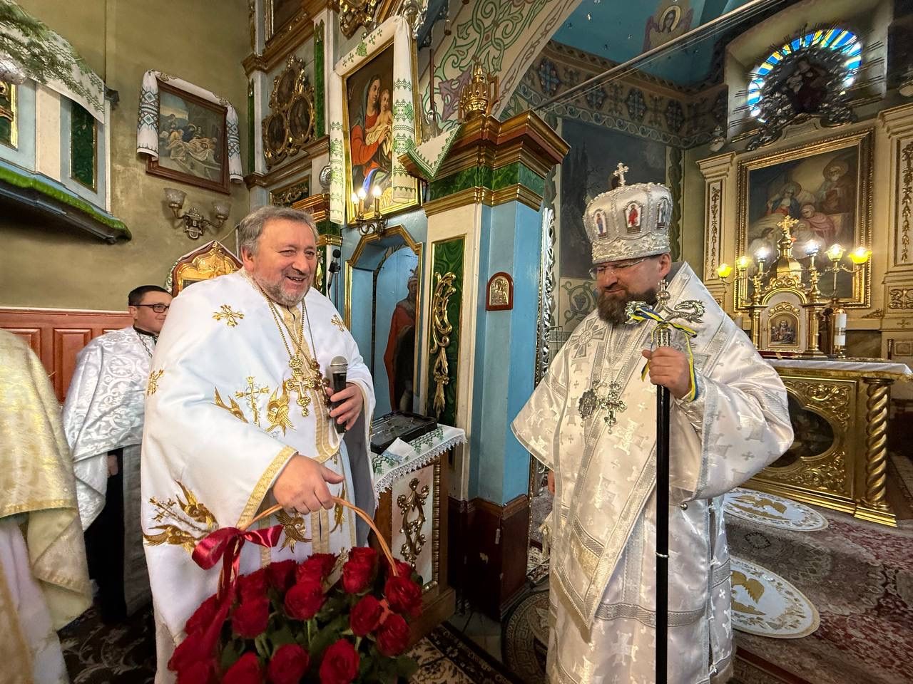 У свою чергу на адрес керуючого єпархії зі словом подяки за відвідини парафії та звершене богослужння звернувся настоятель храму, протоієрей Василь Шира та підніс Архієрею просфору та букет квітів.