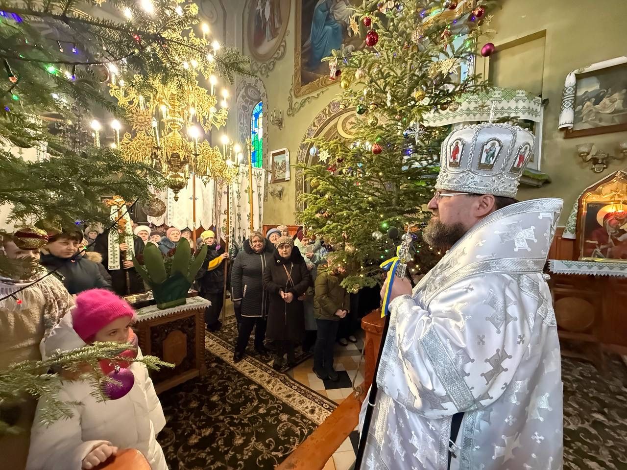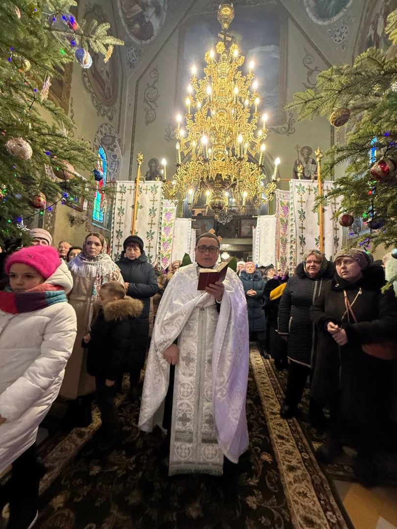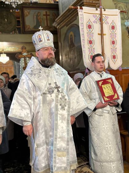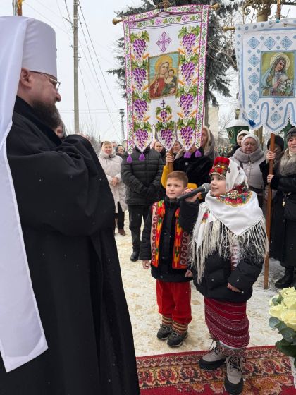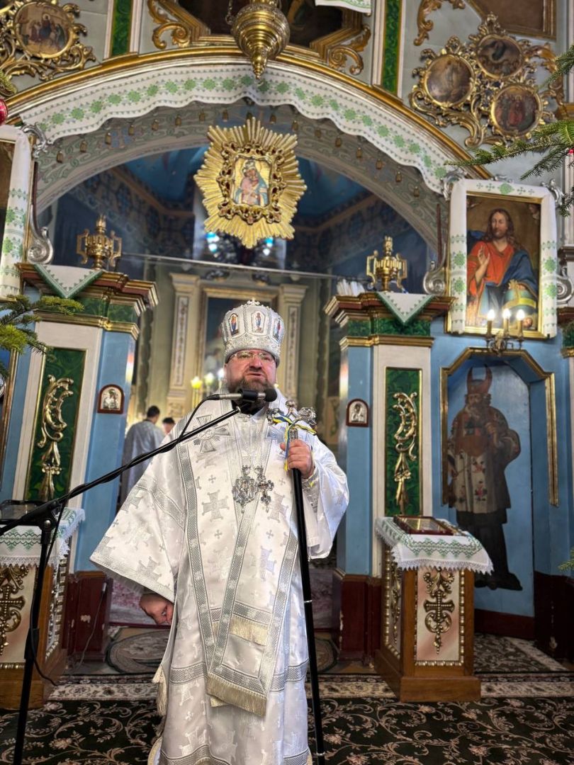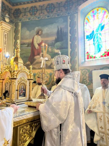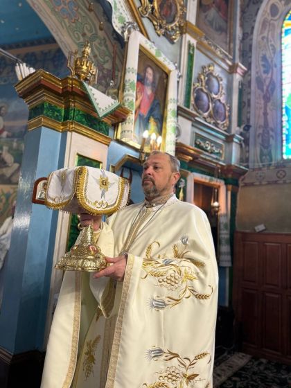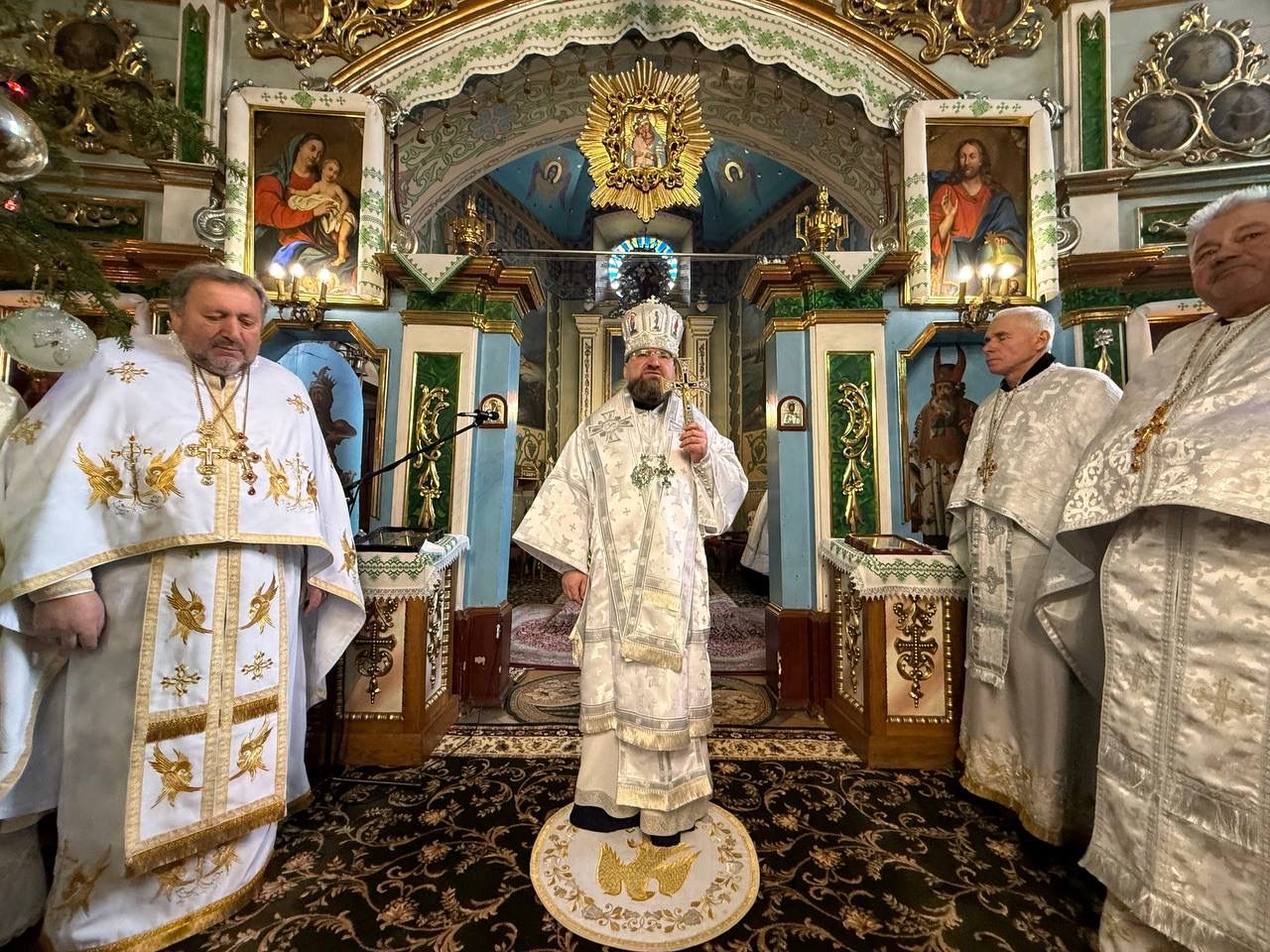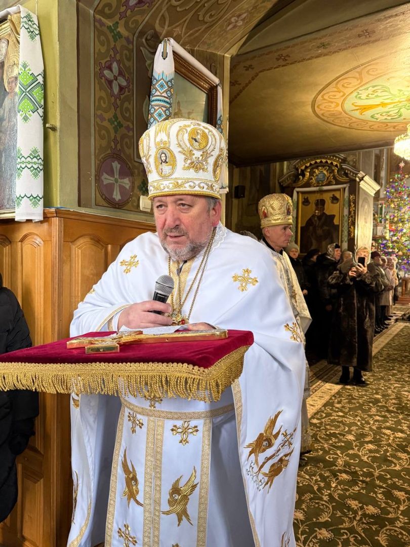 У свою чергу на адрес керуючого єпархії зі словом подяки за відвідини парафії та звершене богослужння звернувся настоятель храму, протоієрей Василь Шира та підніс Архієрею просфору та букет квітів.