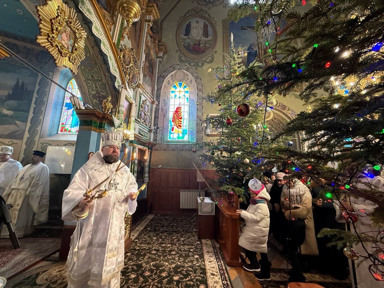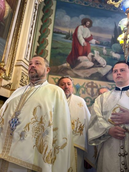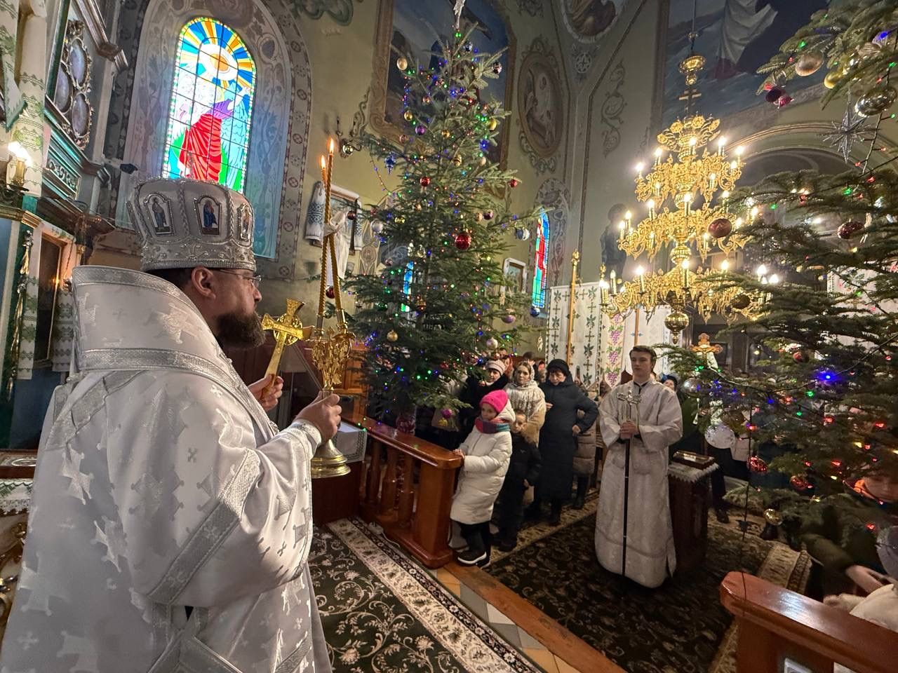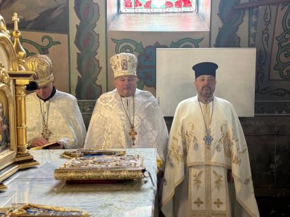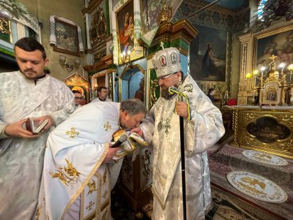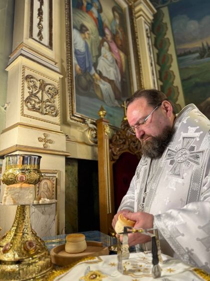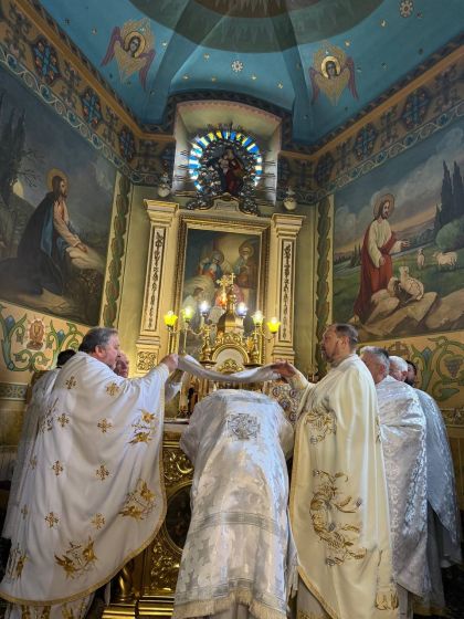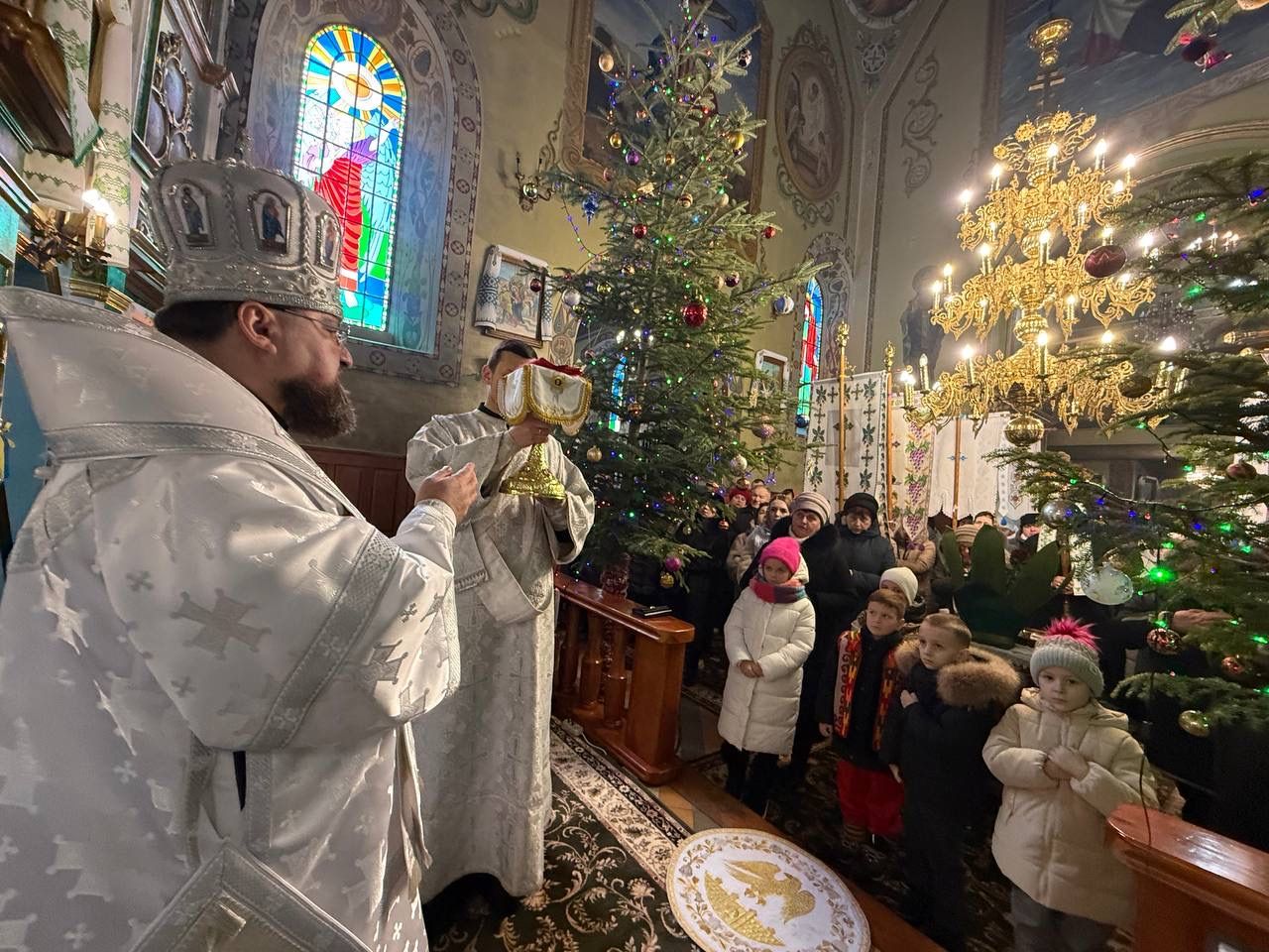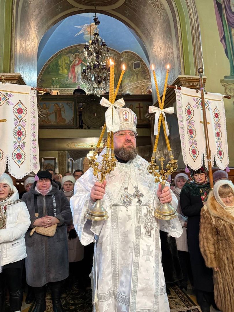 У свою чергу на адрес керуючого єпархії зі словом подяки за відвідини парафії та звершене богослужння звернувся настоятель храму, протоієрей Василь Шира та підніс Архієрею просфору та букет квітів.