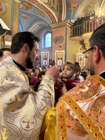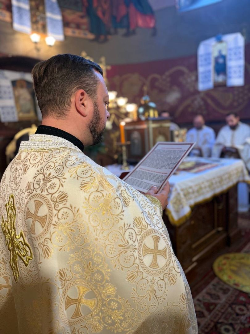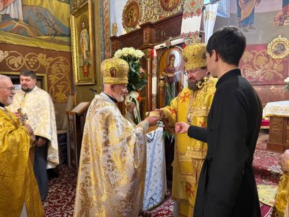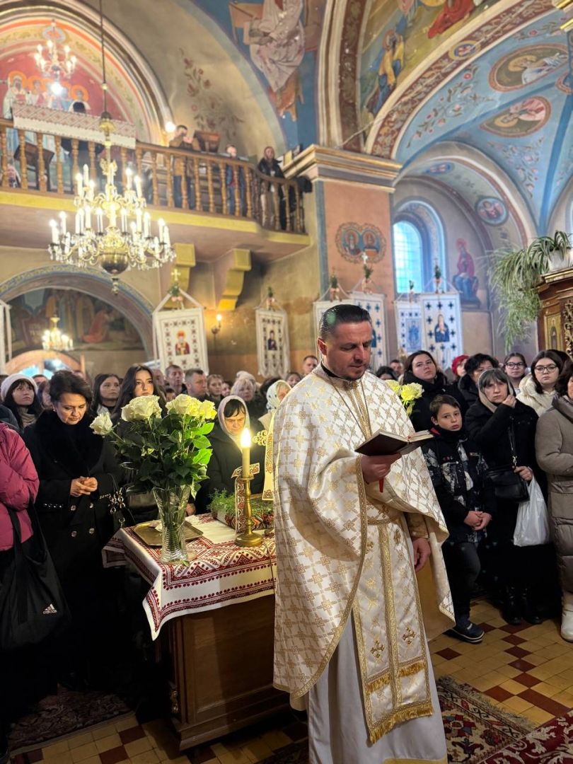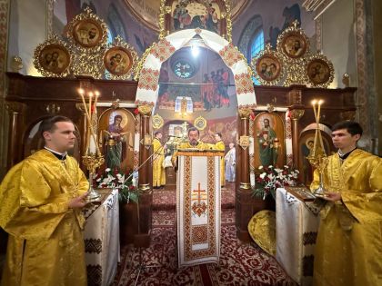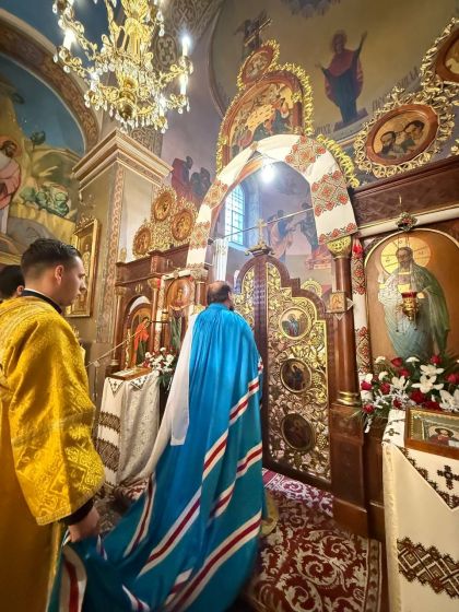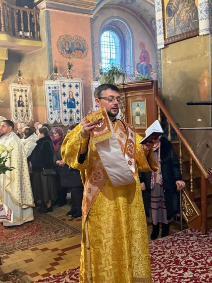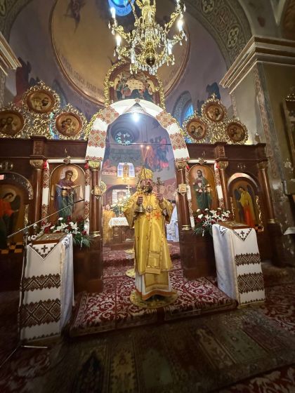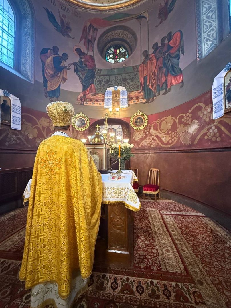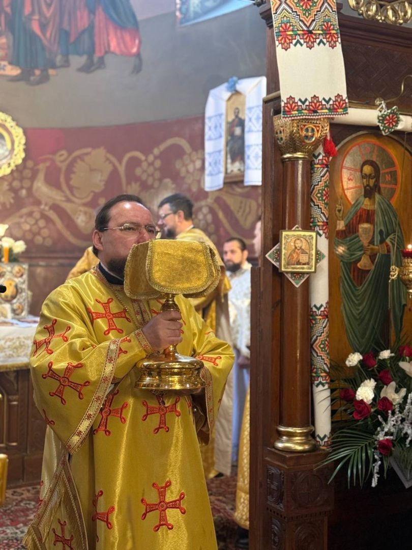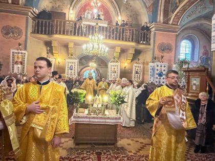 На храмовому подвірʼї із запашним короваєм архіпастиря зустріли парафіяни, а вже у самому храмі Владику привітав настоятель, протоієрей Ярослав Дуда.