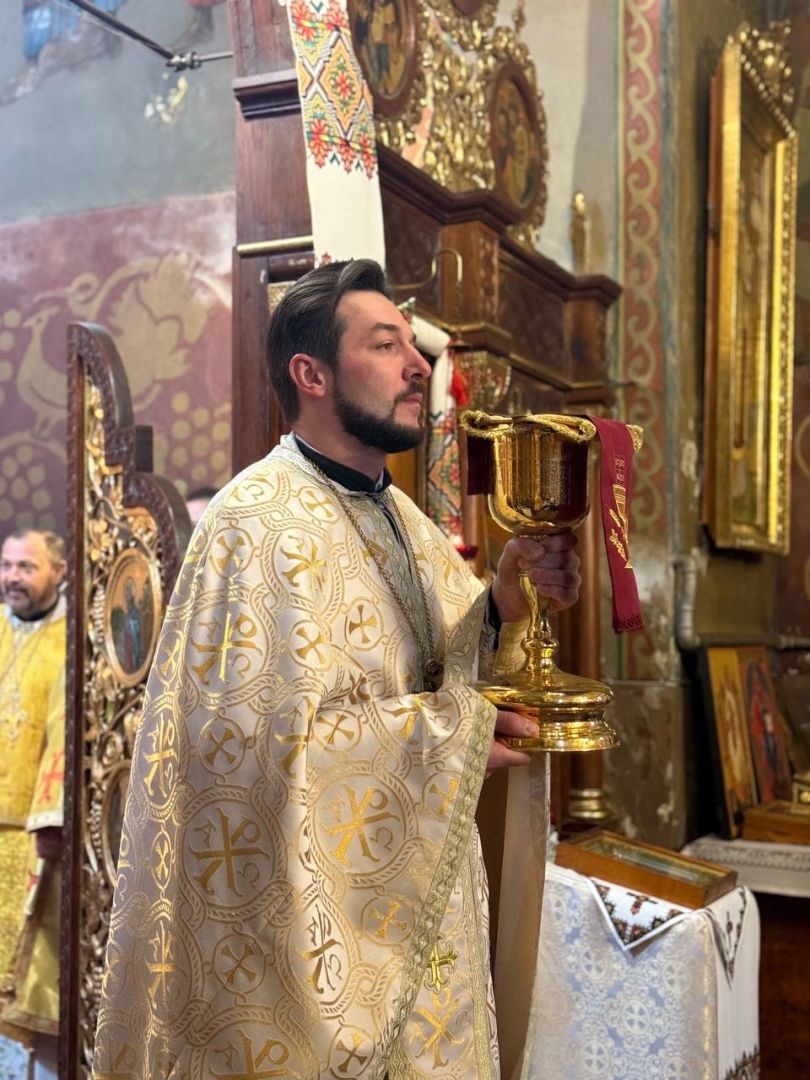 Під час запричасного стиха до присутніх із проповіддю звернувся ректор ЛПБА, ключар Свято-Покровського кафедрального собору, протоієрей Михайло Сивак.