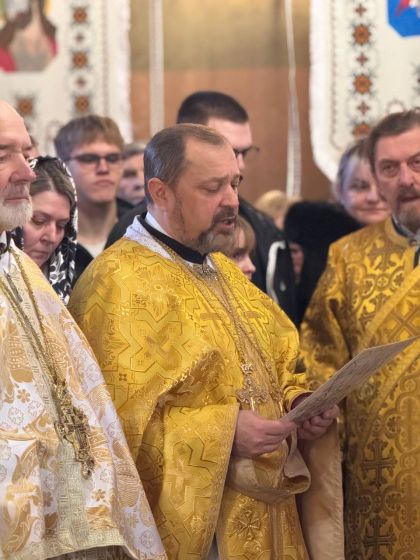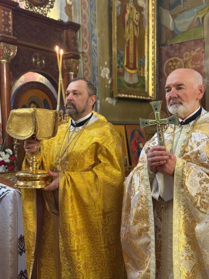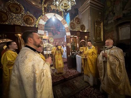 За Божественною Літургією Архієрею співслужили: секретар єпархіального управління, настоятель Львівського храму ікони Божої Матері "Всецариці", протоієрей Володимир Бачинський; настоятель храму Введення в Храм Пресвятої Богородиці смт. Брюховичі, протоієрей Ярослав Ощудляк; Львівський благочинний, настоятель Княжого храму Святого Миколая, протоієрей Ярослав Дуда; ректор ЛПБА, ключар Свято-Покровського собору, протоієрей Михайло Сивак; настоятель Покровського храму с. Рудно, протоієрей Ігор Щерба; настоятель Університетського храму Покрова Пресвятої Богородиці при ЛДУ БЖД, протоієрей Роман Великий; настоятель храму Вознесіння Христового м. Львова, протоієрей Іван Хомин; сотрудник храму св. апостола і євангелиста Луки, протоієрей Андрій Феденьків; настоятель Свято-Духівського храму району Рясне, протоієрей Василь Горон; сотрудник Княжого храму Святого Миколая, протоієрей Олексій Хрептак; настоятель Свято-Троїцького храму, що на Рясне м. Львова протоієрей Петро Курпіта; протодиякон Свято-Покровського кафедрального собору Семен Пігура; диякон Володимир Рудий; диякон Орест Палько.
