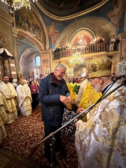 З подячним словом за відвідини парафії та звершене богослужіння до митрополита Димитрія звернувся настоятель храму, протоієрей Ярослав Дуда та підніс Архієрею просфору та букет квітів.