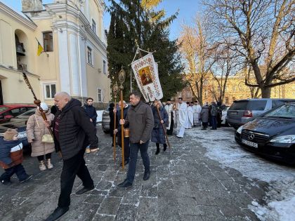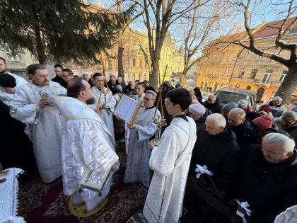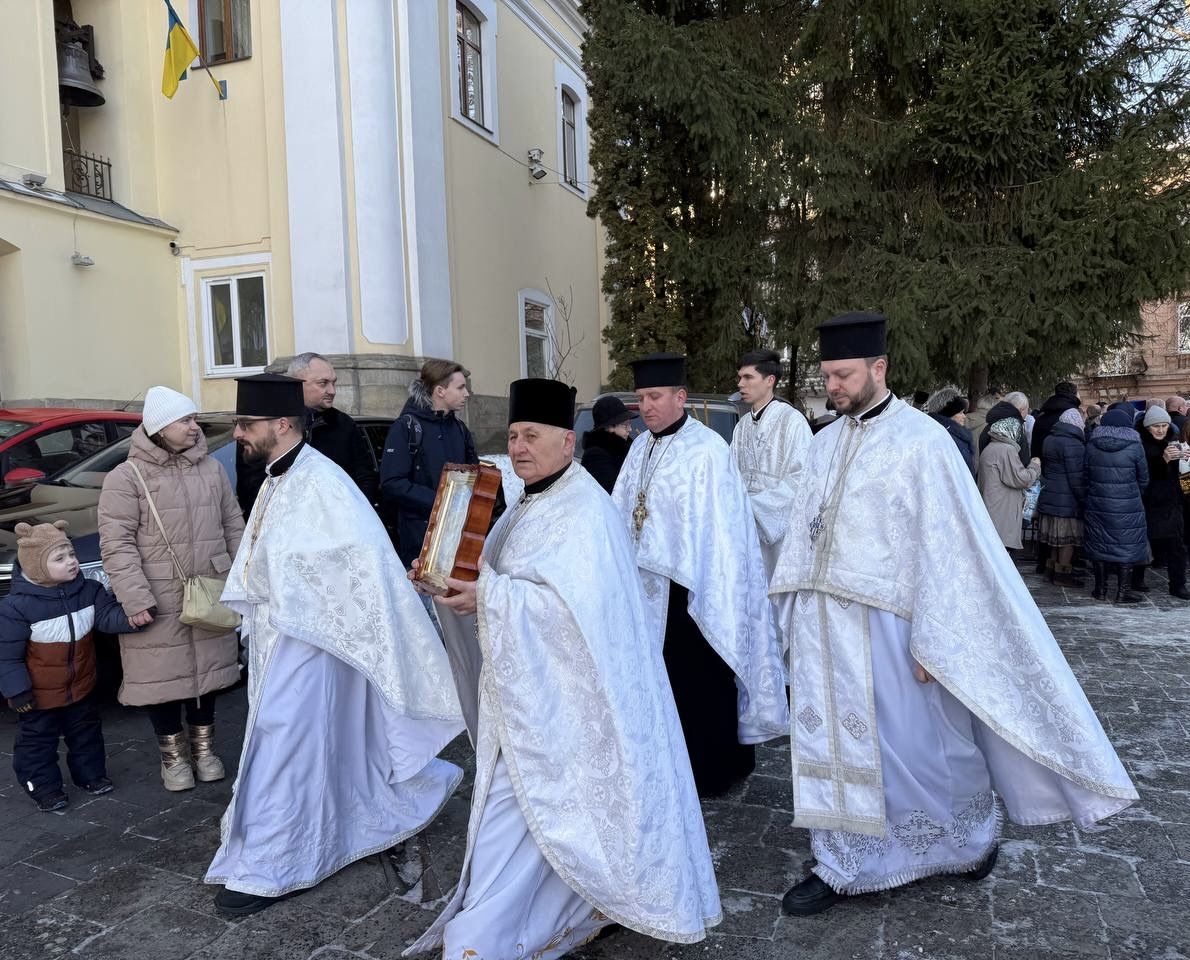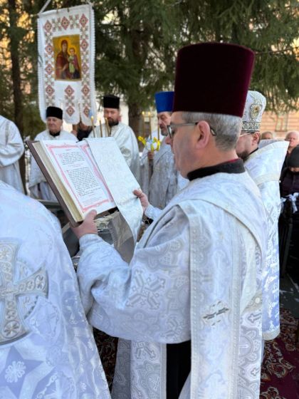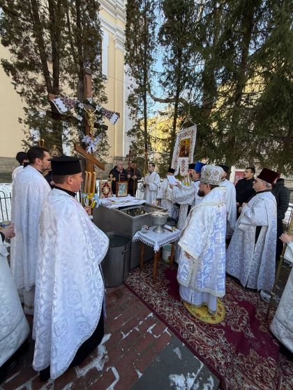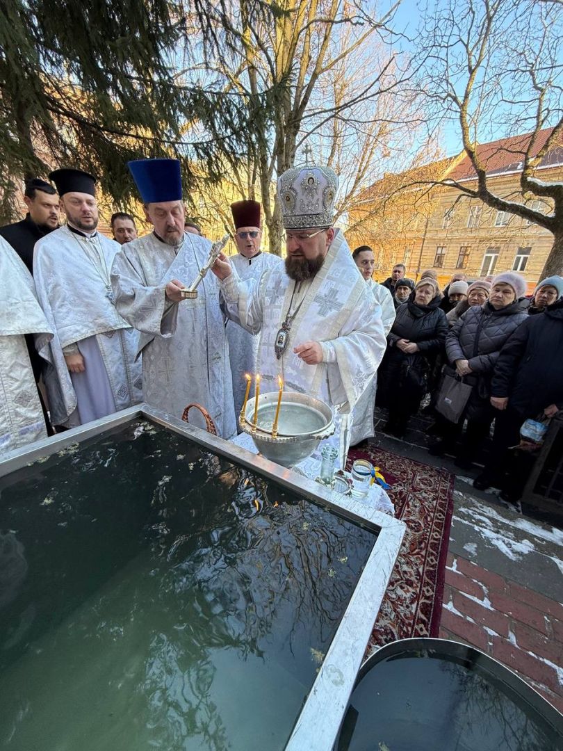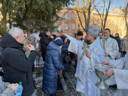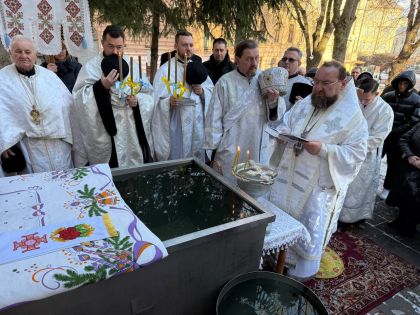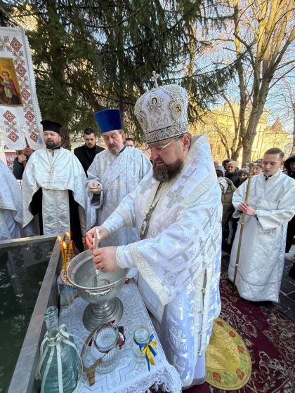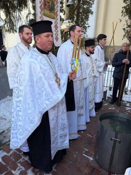 Насамкінець Архіпастир з духовенством на середині храму звершив славлення свята Богоявлення, проспівавши святковий тропар та кондак перед іконою Хрещення Господнього.