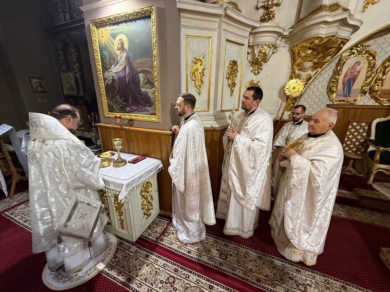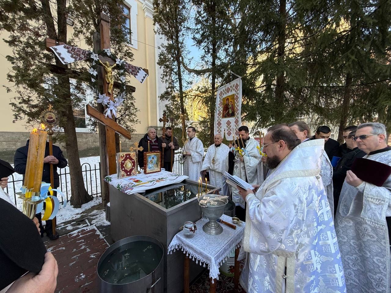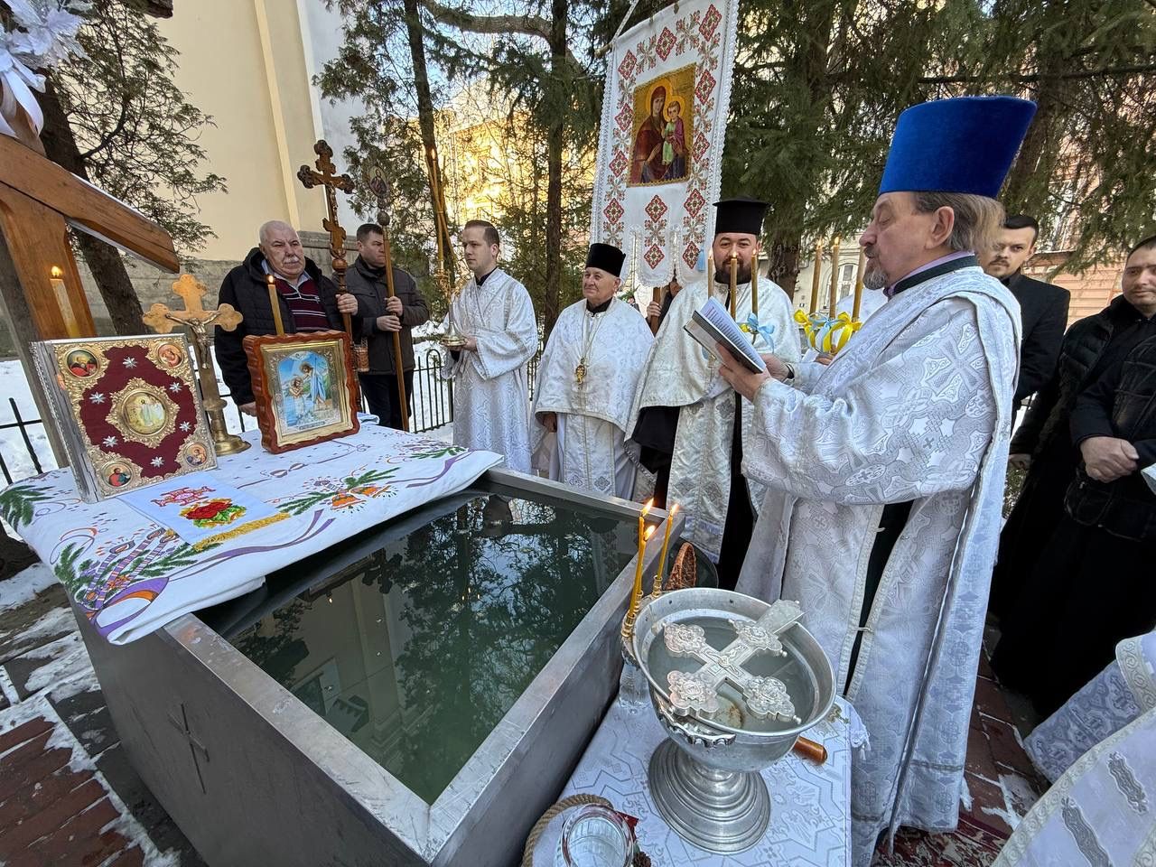 Насамкінець Архіпастир з духовенством на середині храму звершив славлення свята Богоявлення, проспівавши святковий тропар та кондак перед іконою Хрещення Господнього.