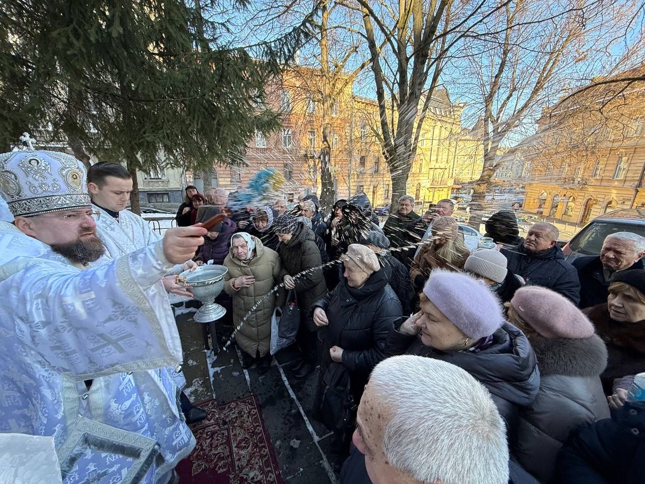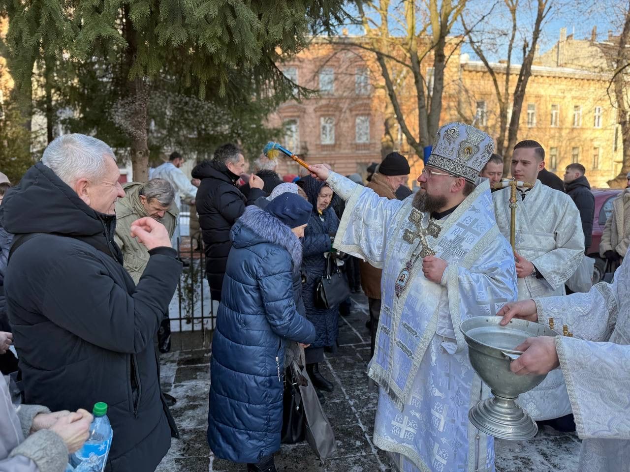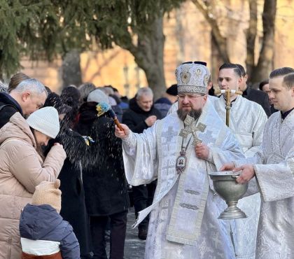 Під спів тропаря свята "У Йордані хрестився Ти, Господи..." Владика Димитрій окроплював святою водою всіх учасників богослужіння.