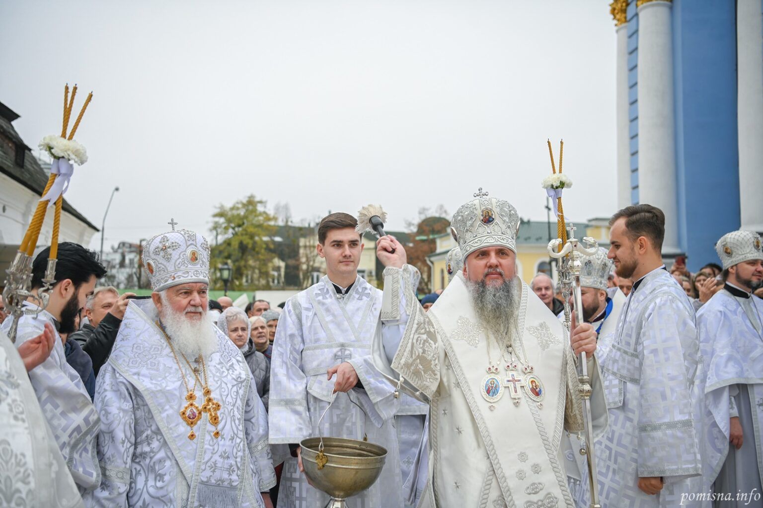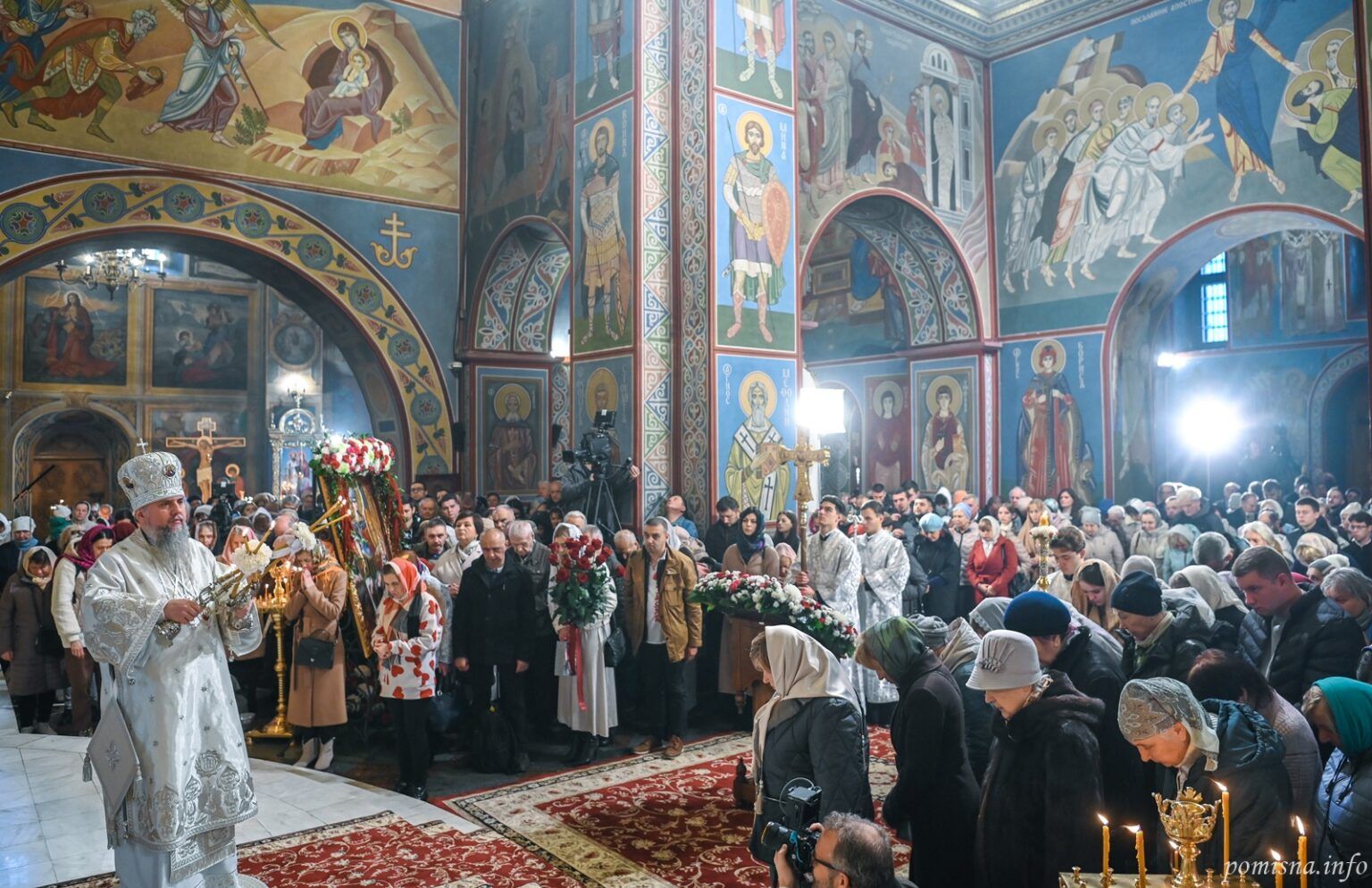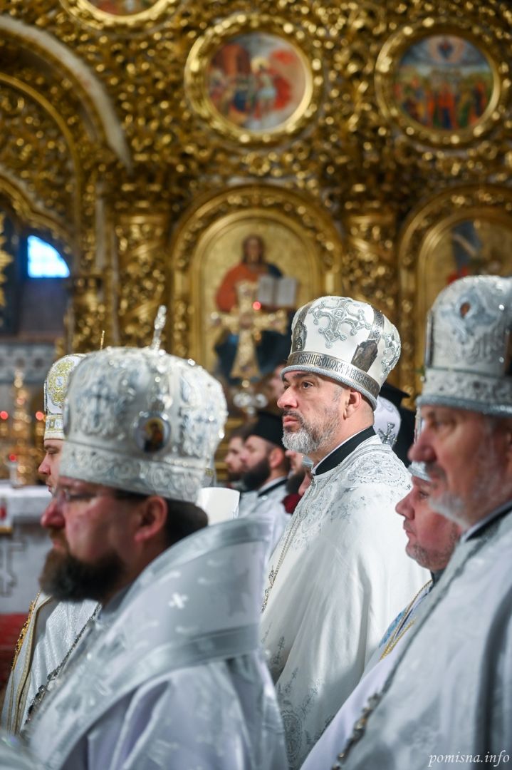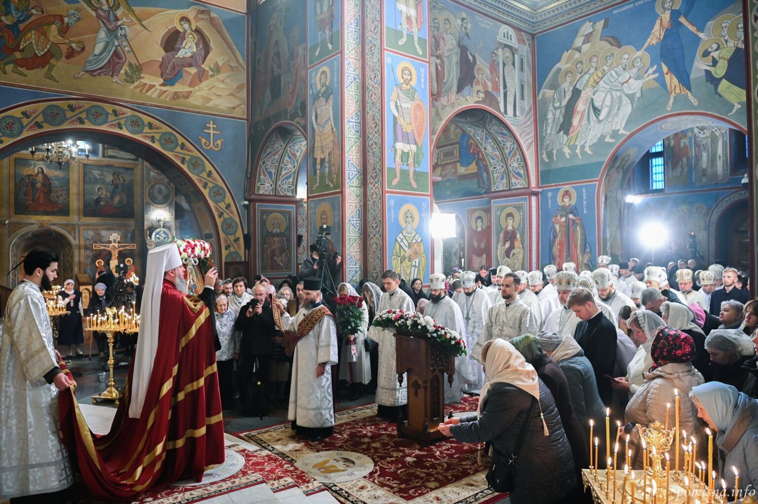 Предстоятелю автокефальної Української Православної Церкви співслужили митрополит Львівський Макарій, митрополит Вінницький і Барський Симеон, митрополит Львівський і Сокальський Димитрій, митрополит Сімферопольський і Кримський Климент, митрополит Рівненський і Острозький Іларіон, митрополит Білоцерківський Євстратій, митрополит Дніпровський і Січеславський Симеон, архієпископ Вишгородський Агапіт, архієпископ Одеський і Балтський Афанасій, архієпископ Харківський і Слобожанський Митрофан, єпископ Запорізький і Мелітопольський Фотій, єпископ Херсонський і Каховський Борис, єпископ Чернігівський і Ніжинський Антоній, всечесна братія монастиря та численне запрошене духовенство.