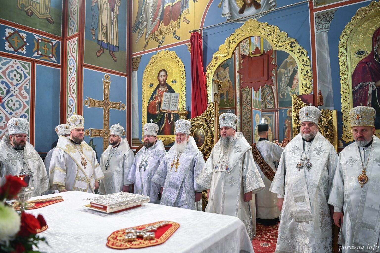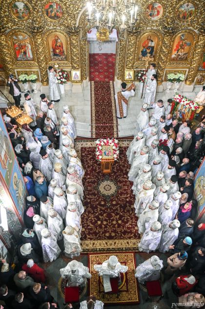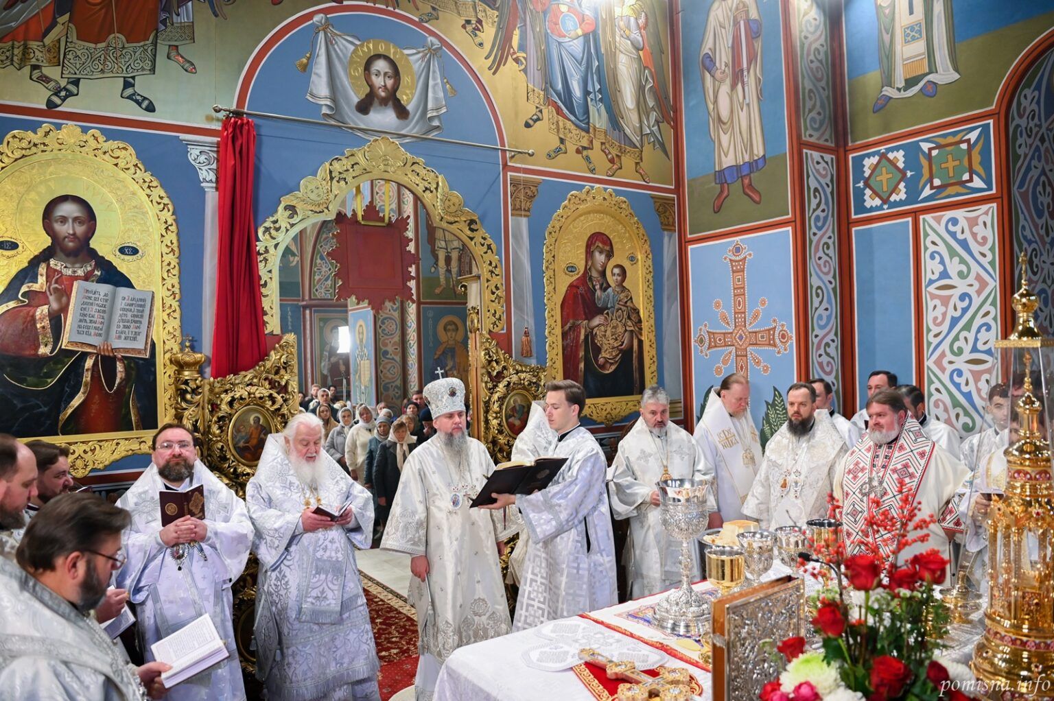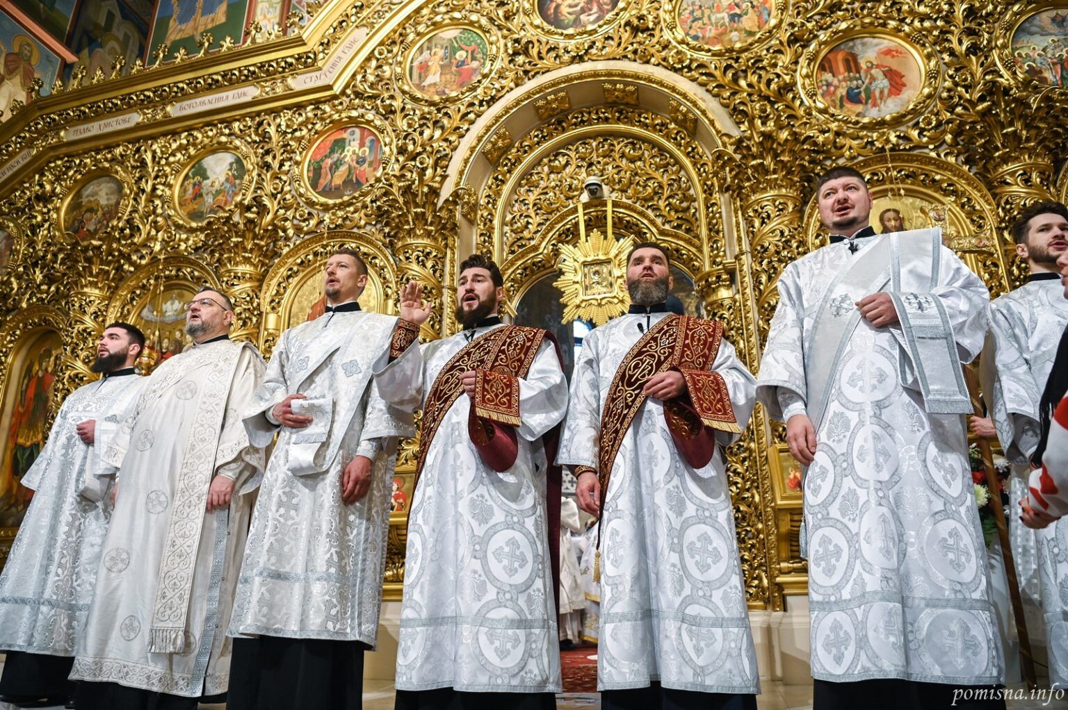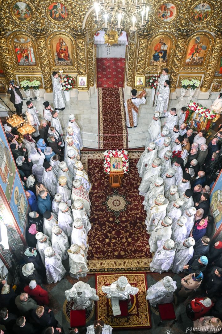 Предстоятелю автокефальної Української Православної Церкви співслужили митрополит Львівський Макарій, митрополит Вінницький і Барський Симеон, митрополит Львівський і Сокальський Димитрій, митрополит Сімферопольський і Кримський Климент, митрополит Рівненський і Острозький Іларіон, митрополит Білоцерківський Євстратій, митрополит Дніпровський і Січеславський Симеон, архієпископ Вишгородський Агапіт, архієпископ Одеський і Балтський Афанасій, архієпископ Харківський і Слобожанський Митрофан, єпископ Запорізький і Мелітопольський Фотій, єпископ Херсонський і Каховський Борис, єпископ Чернігівський і Ніжинський Антоній, всечесна братія монастиря та численне запрошене духовенство.