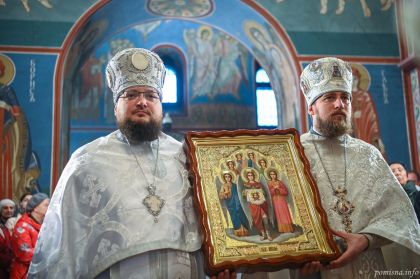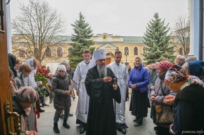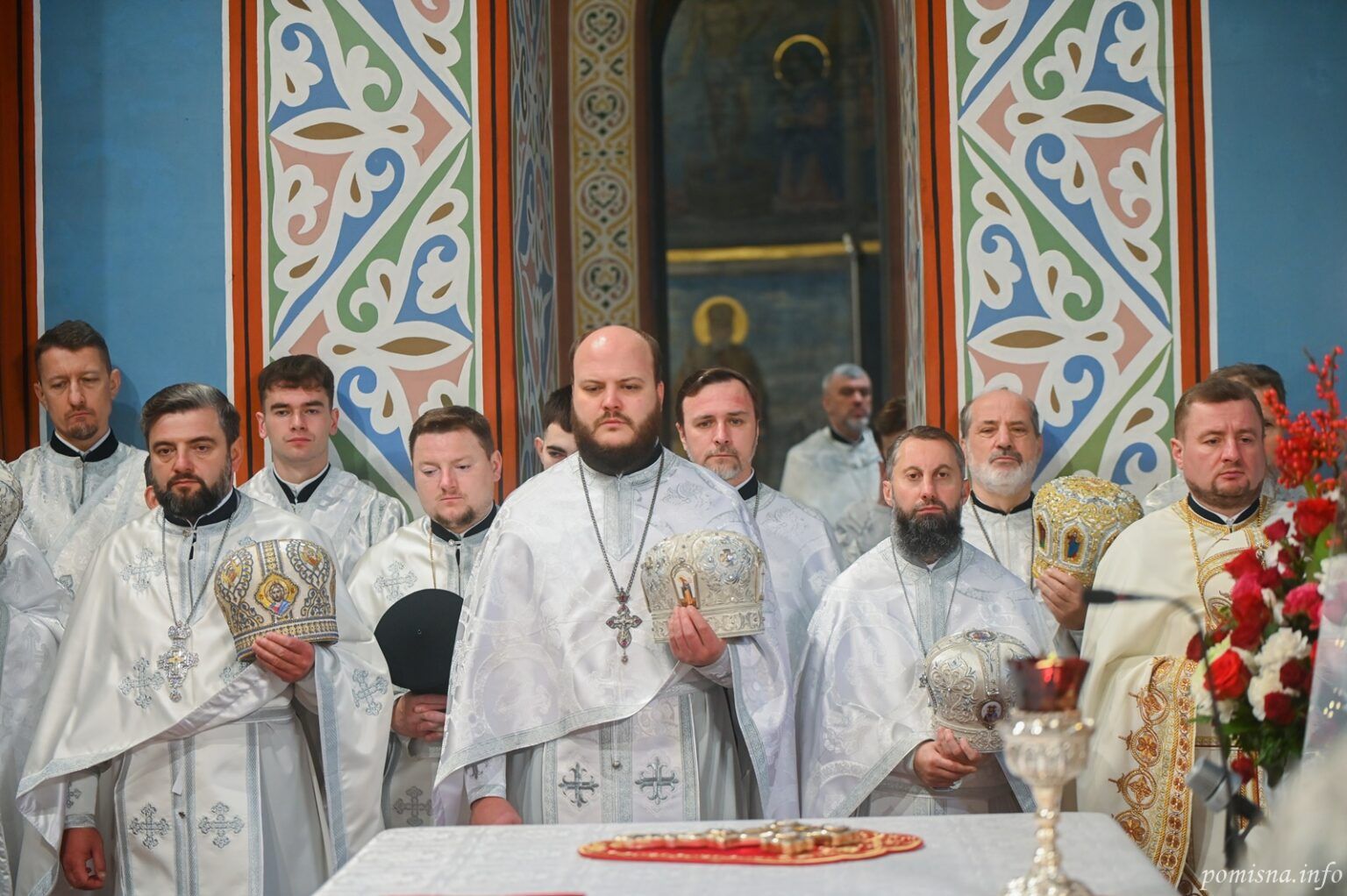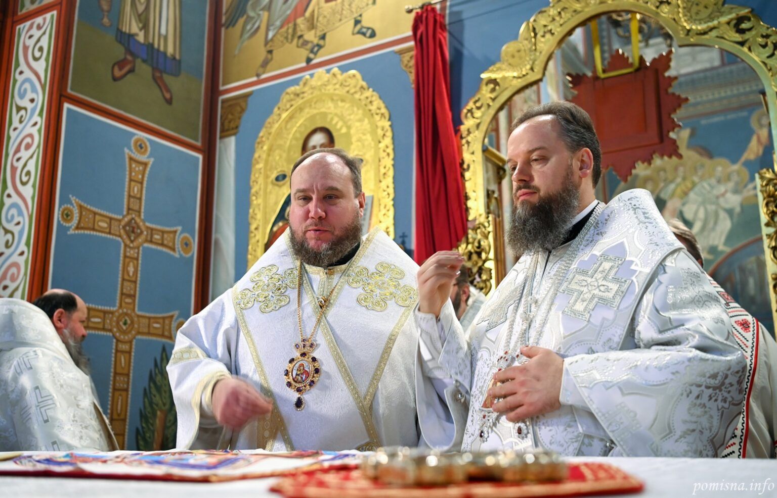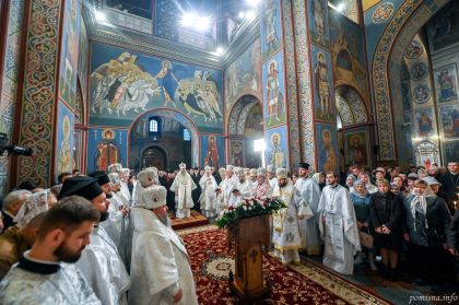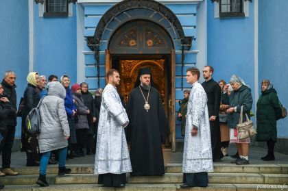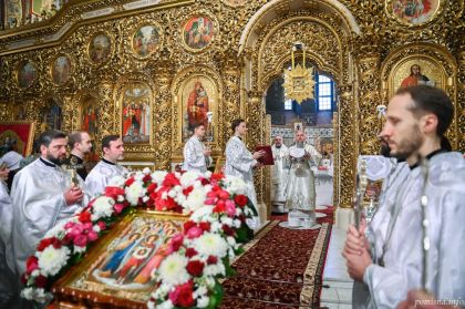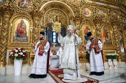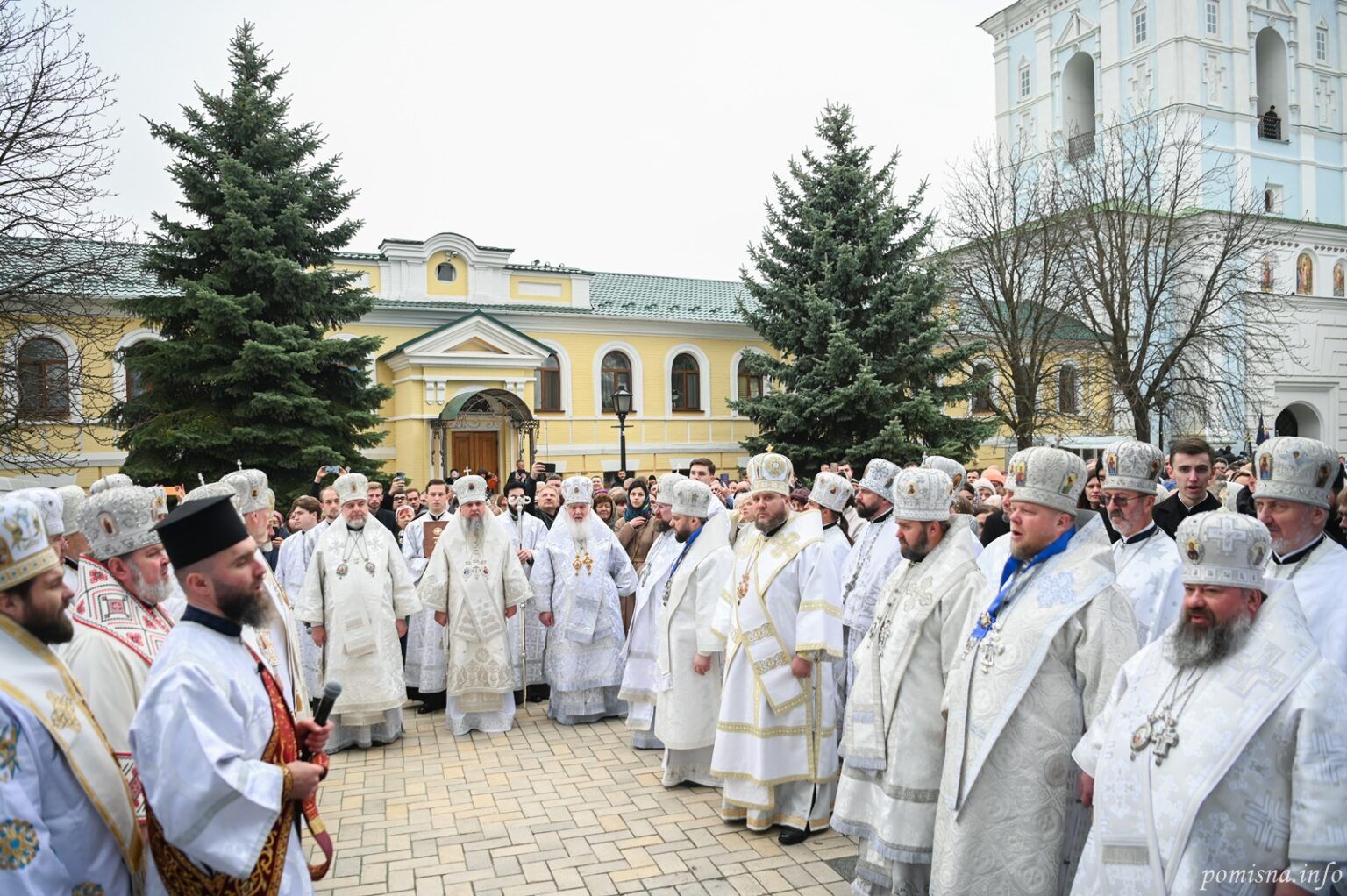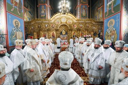 Предстоятелю автокефальної Української Православної Церкви співслужили митрополит Львівський Макарій, митрополит Вінницький і Барський Симеон, митрополит Львівський і Сокальський Димитрій, митрополит Сімферопольський і Кримський Климент, митрополит Рівненський і Острозький Іларіон, митрополит Білоцерківський Євстратій, митрополит Дніпровський і Січеславський Симеон, архієпископ Вишгородський Агапіт, архієпископ Одеський і Балтський Афанасій, архієпископ Харківський і Слобожанський Митрофан, єпископ Запорізький і Мелітопольський Фотій, єпископ Херсонський і Каховський Борис, єпископ Чернігівський і Ніжинський Антоній, всечесна братія монастиря та численне запрошене духовенство.
