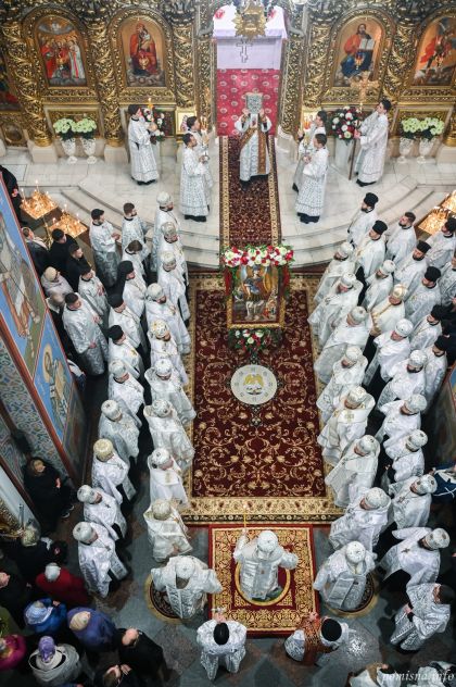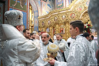 Предстоятелю автокефальної Української Православної Церкви співслужив єпископат з усієї України, всечесна братія монастиря та численне запрошене духовенство.