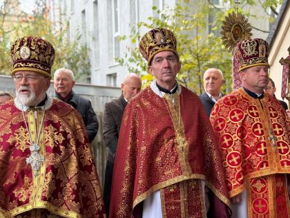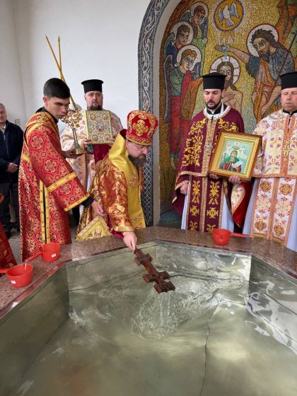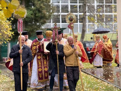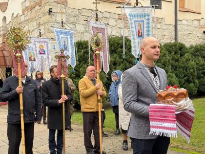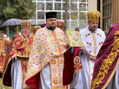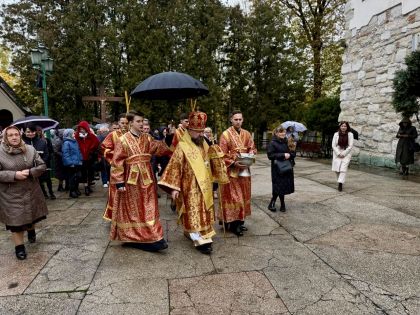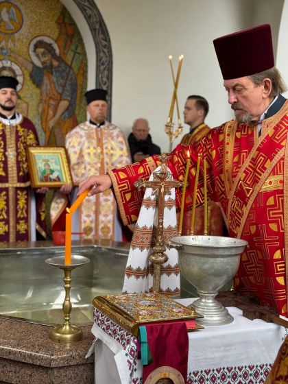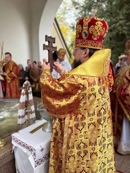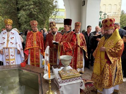 По завершенні Літургії Архіпастир разом з духовенством вирушив до каплиці на подвір’ї храму, де звершив водосвятний молебень, після якого відбулась хресна хода навколо храму.
