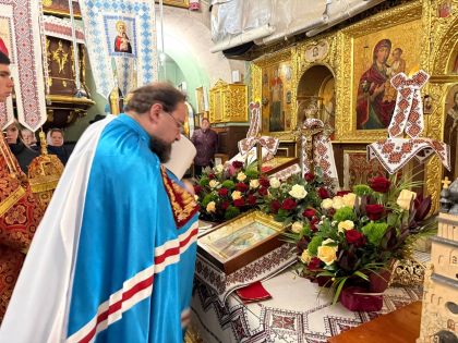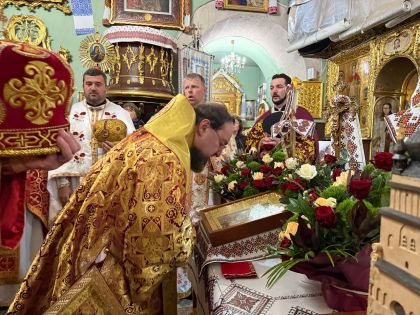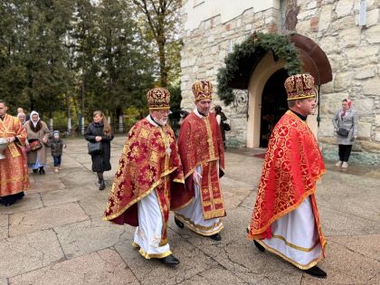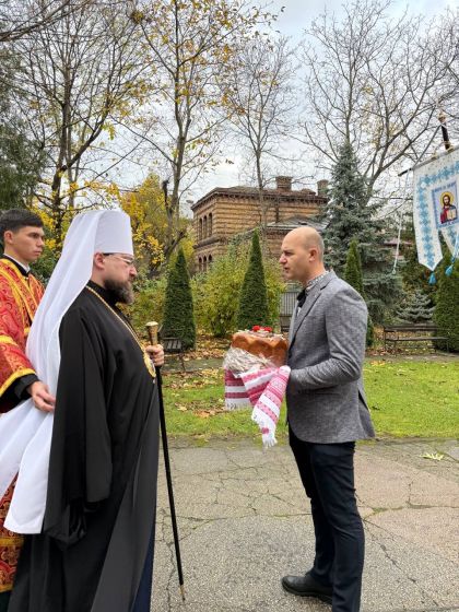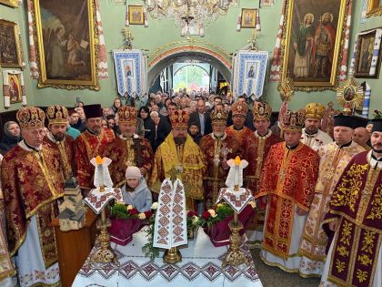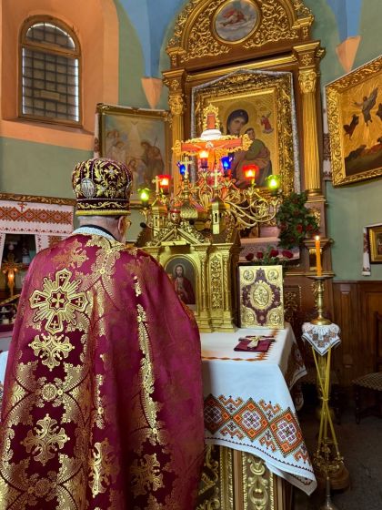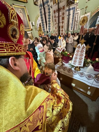 Вітальним словами та запашним короваєм на подвір’ї храму Архіпастиря зустріли парафіяни старовинного храму, а у притворі Владику щирим привітанням зустрів настоятель храму, протоієрей Ігор Малетич.