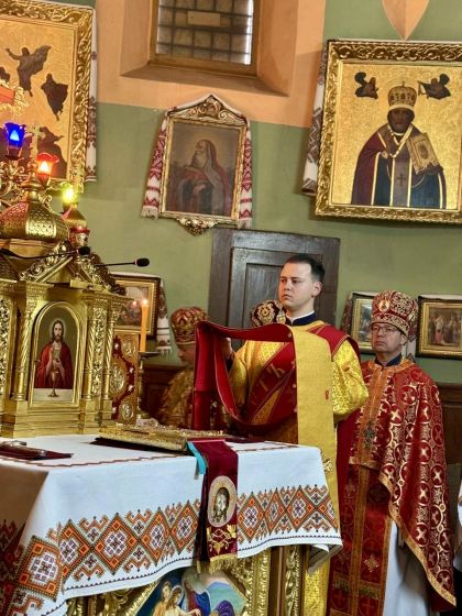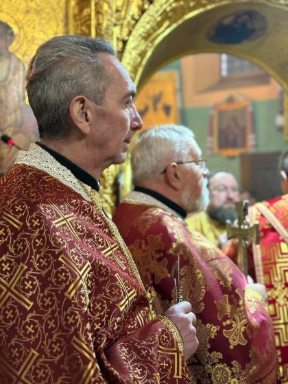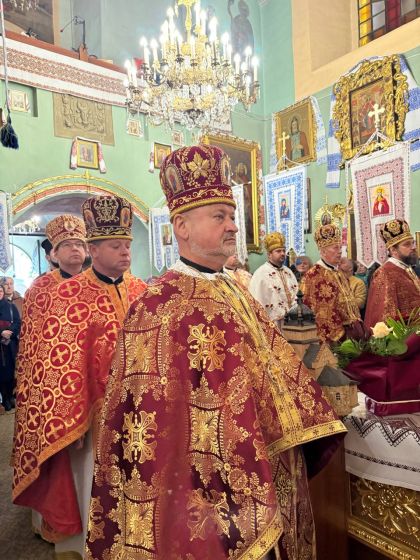 За Божественною Літургією Владиці співслужили: секретар єпархіального управління, настоятель Львівського храму ікони Божої Матері "Всецариці", протоієрей Володимир Бачинський; настоятель храму Введення в Храм Пресвятої Богородиці смт. Брюховичі, протоієрей Ярослав Ощудляк; настоятель Покровського храму с. Рудно, протоієрей Ігор Щерба; настоятель П'ятницького храму на Підзамче протоієрей Ігор Малетич; настоятель храму Вознесіння Христового, протоієрей Іван Хомин; настоятель храму Всіх святих землі Української м.Львова, протоієрей Віктор Феденьків; настоятель Свято-Покровського храму на Левандівці протоієрей Олексій Скородинський; сотрудник у П'ятницькому храмі на Підзамче, протоієрей Павло Вербинський; настоятель храму Пресвятої Тройці с. Малі Грибовичі, протоієрей Андрій Ощудляк; сотрудник Свято-Миколаївського княжого храму м. Львова, протоієрей Петро Політило; сотрудник у П'ятницькому храмі на Підзамче, протоієрей Віталій Федюк; настоятель Свято-Троїцького храму, що на Рясне м. Львова протоієрей Петро Курпіта; протодиякон Свято-Покровського кафедрального собору Семен Пігура; диякон Орест Палько.