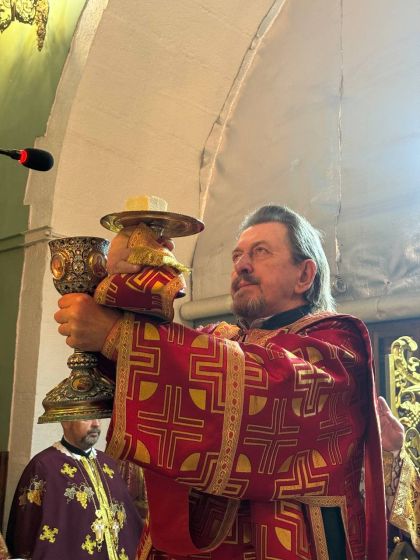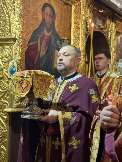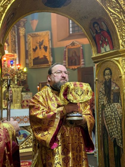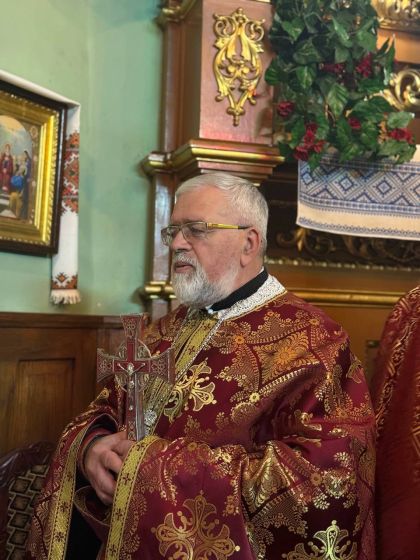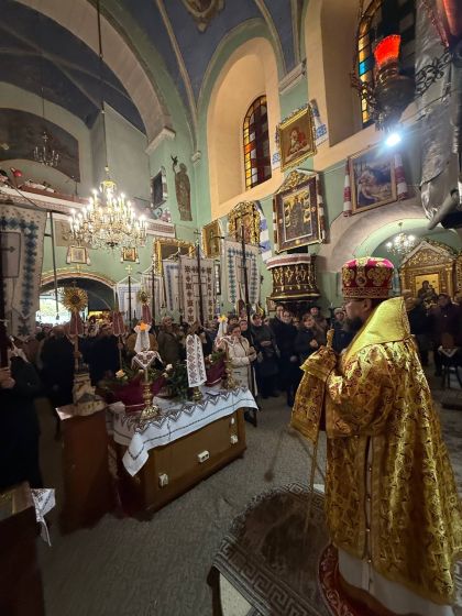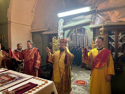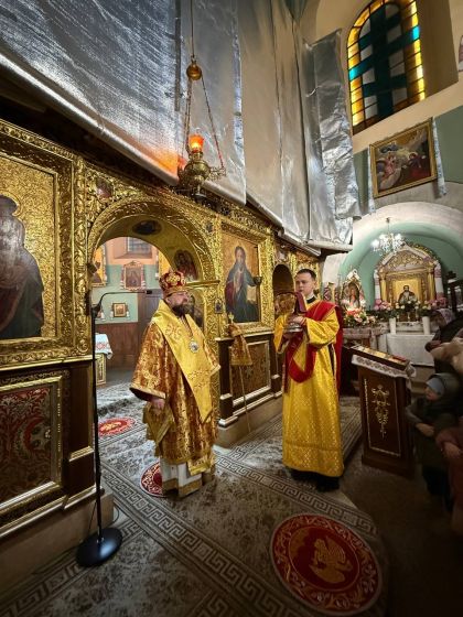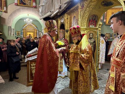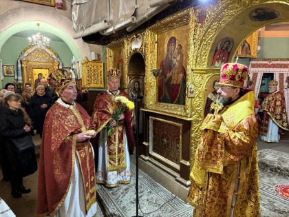 Із щирими словами вдячності за звершене богослужіння до Архієрея звернувся настоятель храму протоієрей Ігор Малетич та на знак пошани і вдячності підніс Владиці просфору та квіти.