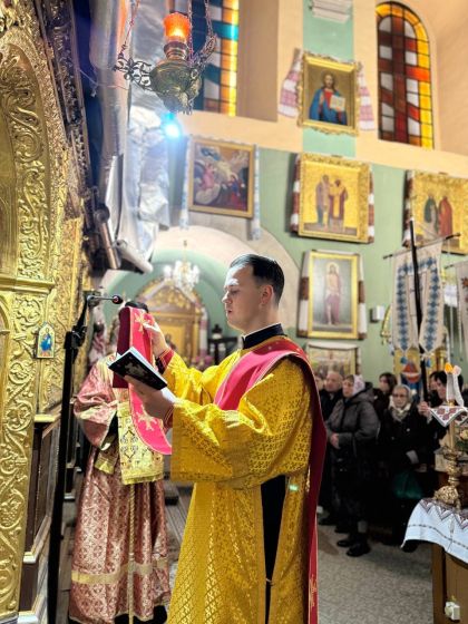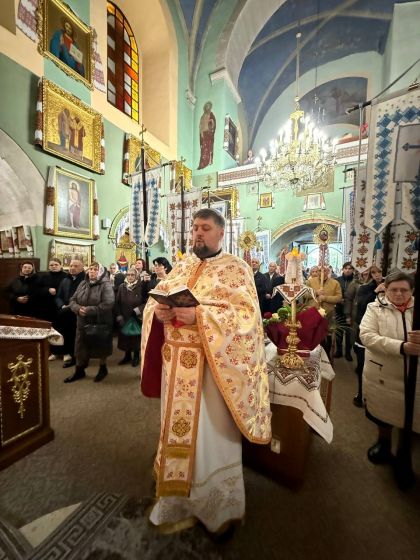 Богослужбові співи виконував парафіяльний ансамбль храму Введення в Храм Пресвятої Богородиці смт. Брюховичі.