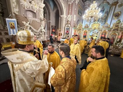 За всенічною відправою Архіпастирю співслужили клірики собору та єпархії.