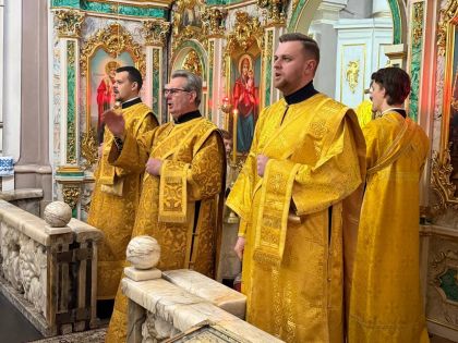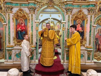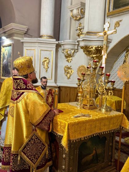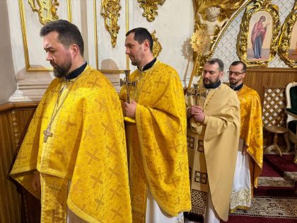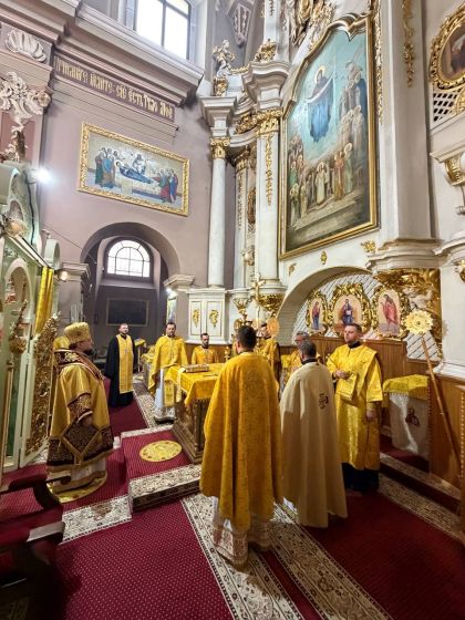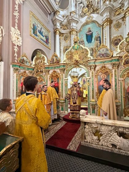 За святковим богослужнням Архіпастирю співслужили клірики собору та єпархії.