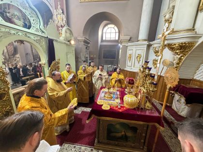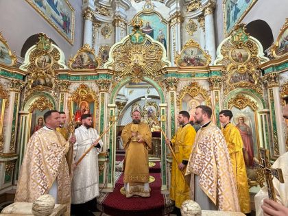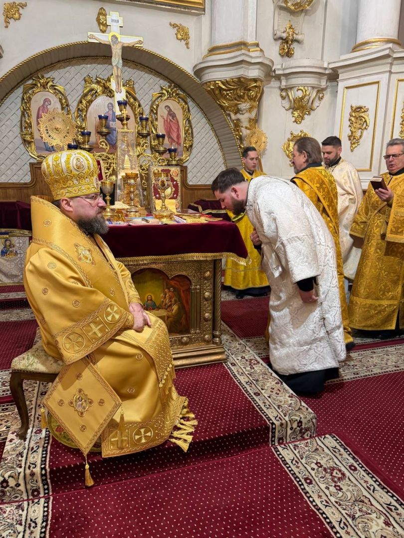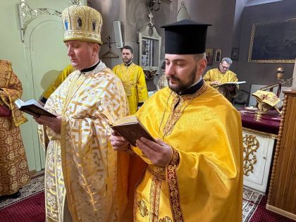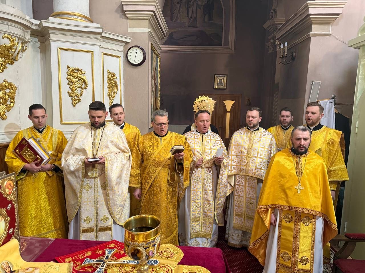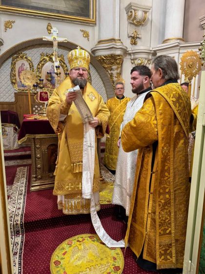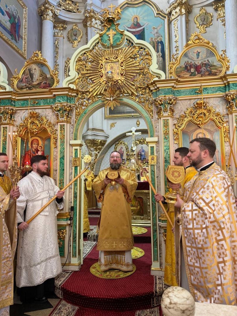 За Божественною Літургією Владиці співслужили: ключар Свято-Покровського кафедрального собору, протоієрей Михайло Сивак; економ єпархіального управління, протоієрей Михайло Довгий; протоієрей Артемій Бабленюк; ієрей Іван Сподар; настоятель храму Успіння Пресвятої Богородиці с. Глинськ ієромонах Давид Лацуга; ієрей Назарій Тишинський; протодиякон Семен Пігура; протодиякон Михайло Батенчук; диякон Богдан Грох; диякон Богдан Дармограй; диякон Юліан Романчук.