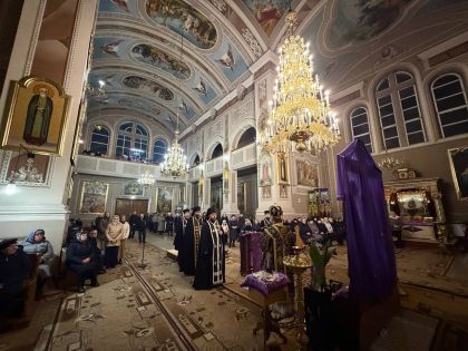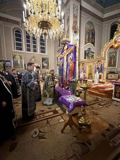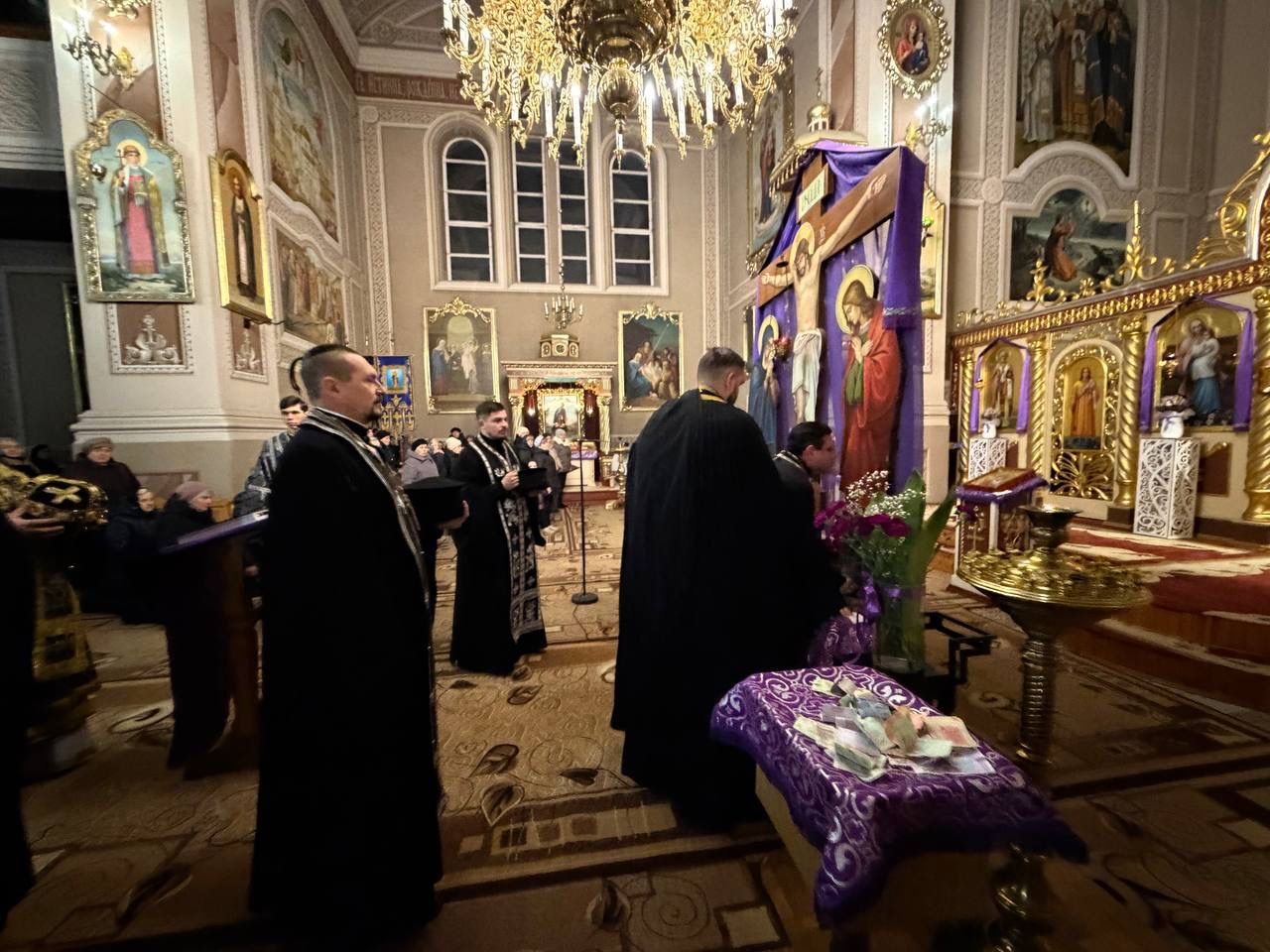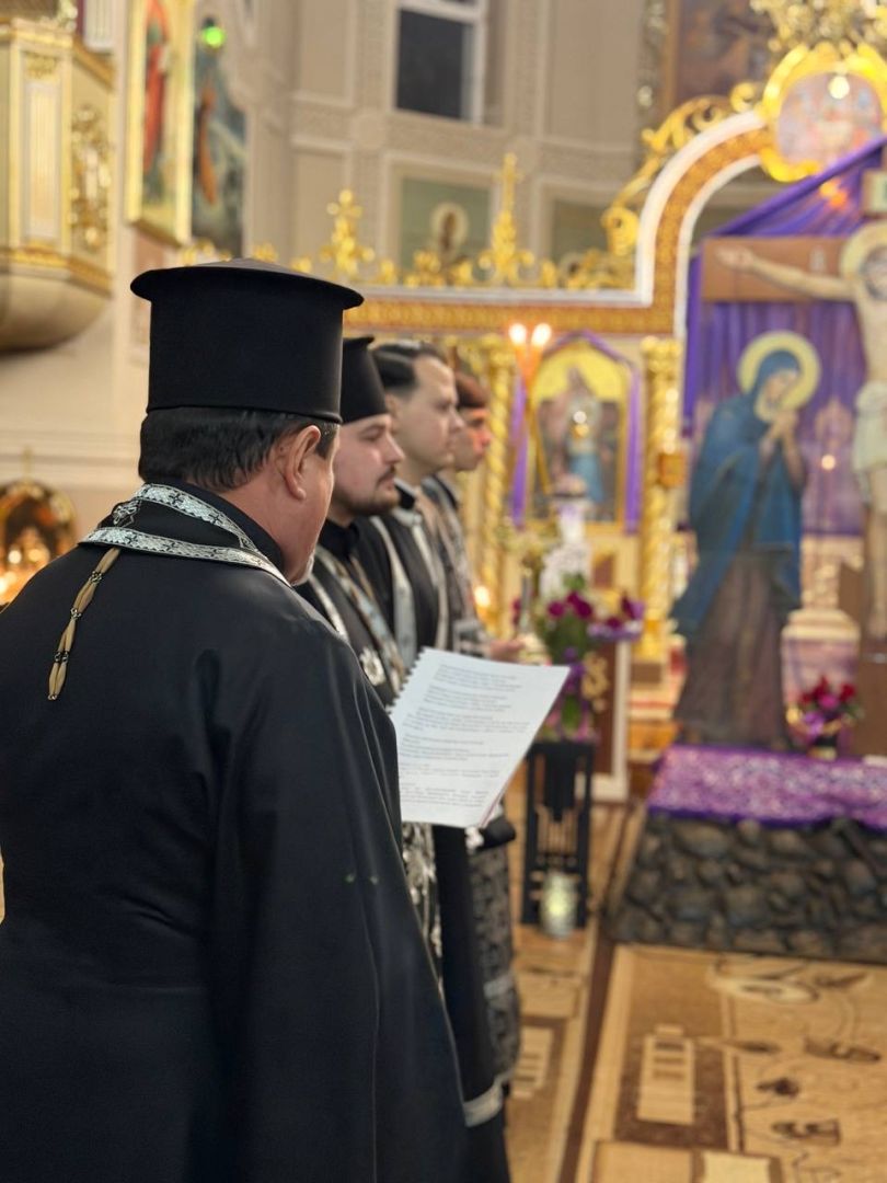 Під час богослужіння були прочитані 26-та та 27-ма глави Євангелія від Матфея, в яких розповідається про події останніх годин земного життя Спасителя: зраду Іуди, Тайну Вечерю, молитву у Гефсиманії, ув'язнення, суд первосвящеників, суд у прокуратора, смертний вирок, шлях на Голгофу, розп'яття і смерть.