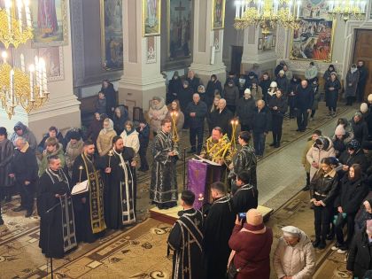 За постовою відправою Митрополиту співслужили: настоятель храму святих апостолів Петра і Павла, архімандрит Маркіян Каюмов; сотрудник Петро-Павлівського храму, протоієрей Ігор Цуприк; настоятель храму Успіння Пресвятої Богородиці с. Глинськ ієромонах Давид Лацуга; ієрей Богдан Денькович; ієрей Олександр Сатула; протодиякон Семен Пігура; диякон Орест Палько.