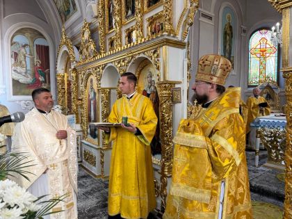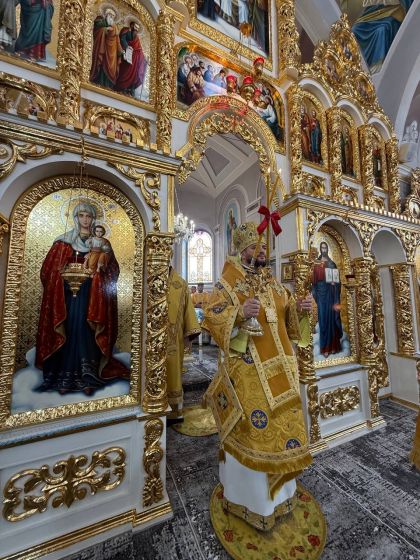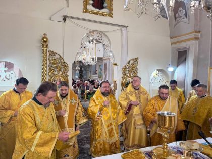 На церковному подвір’ї із запашним короваєм митрополита Димитрія віршовано зустріли парафіяни, а в самому храмі очільника єпархії привітав настоятель, протоієрей Мирослав Мартиник.