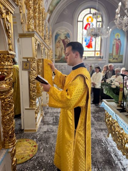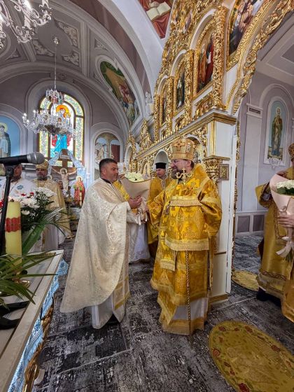 У свою чергу настоятель храму, протоієрей Мирослав Мартиник, подякував архіпастирям за звершене богослужіння та на знак вдячності підніс їм букети квітів.