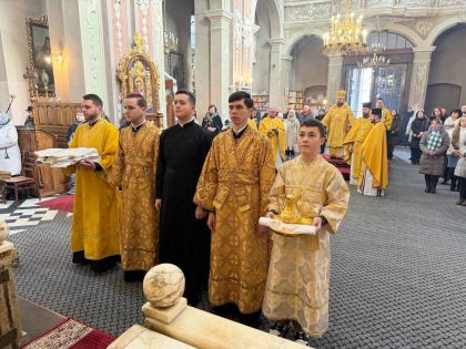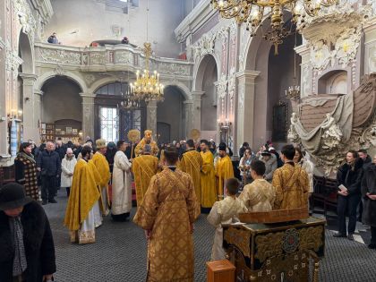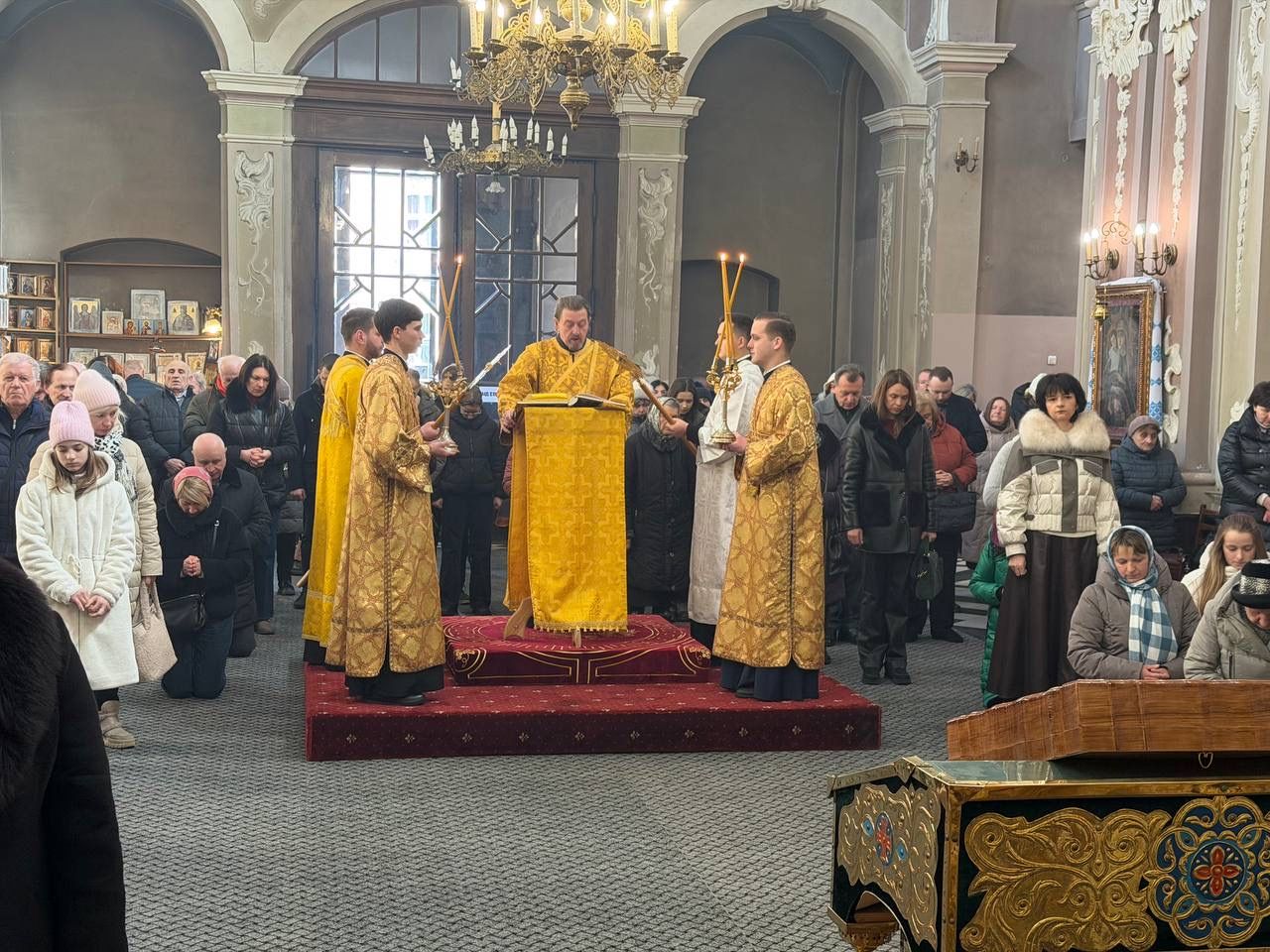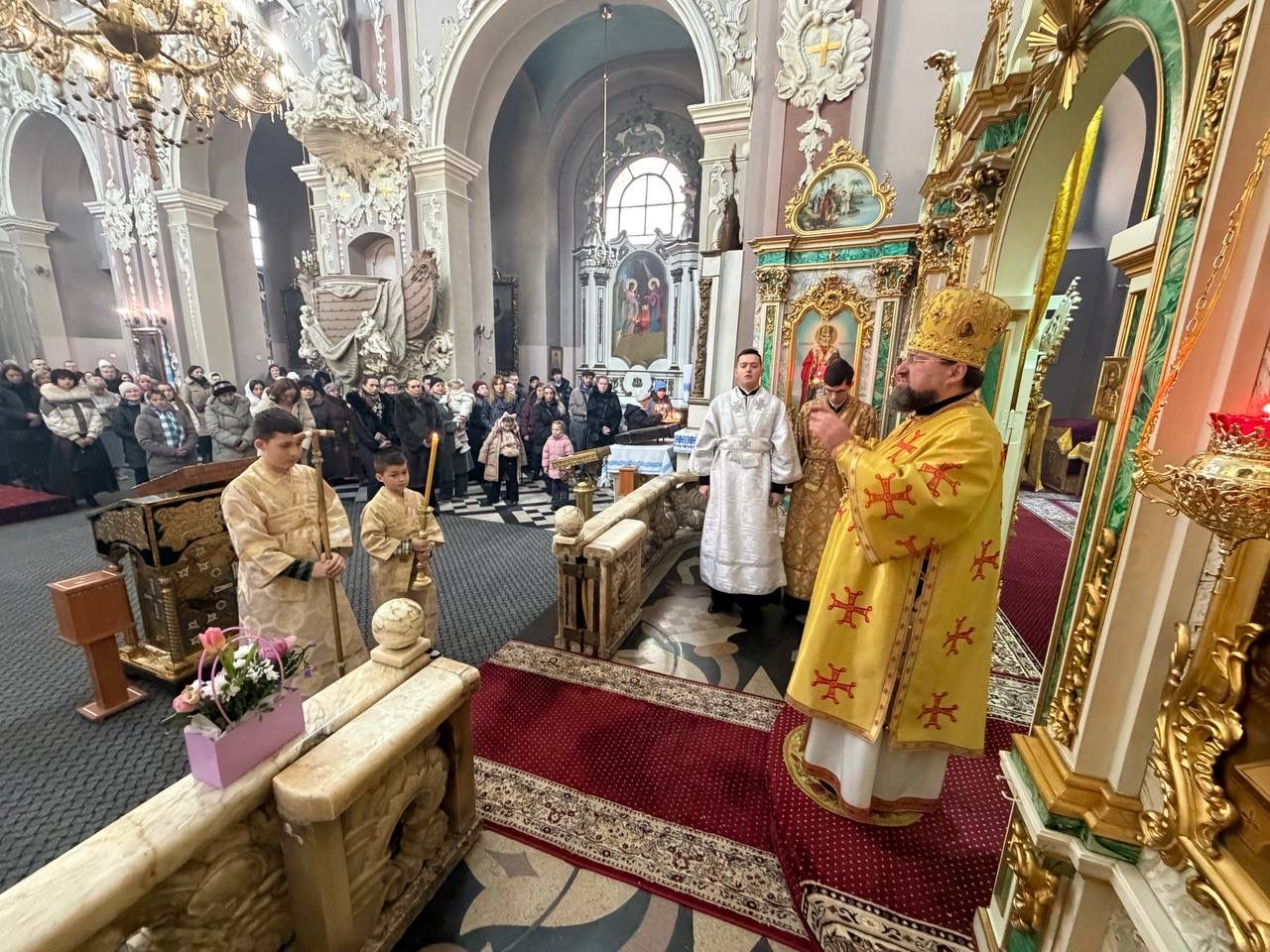 22 лютого 2026 року, у неділю сиропусну, прощену, спомин Адамового вигнання з раю митрополит Львівський і Сокальський Димитрій звершив Божественну Літургію за чином святителя Іоана Золотоустого у Свято-Покровському кафедральному соборі м. Львова.