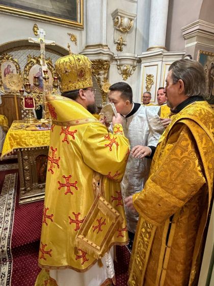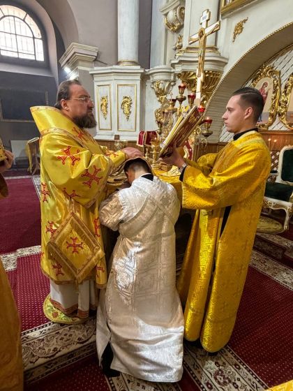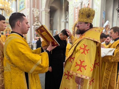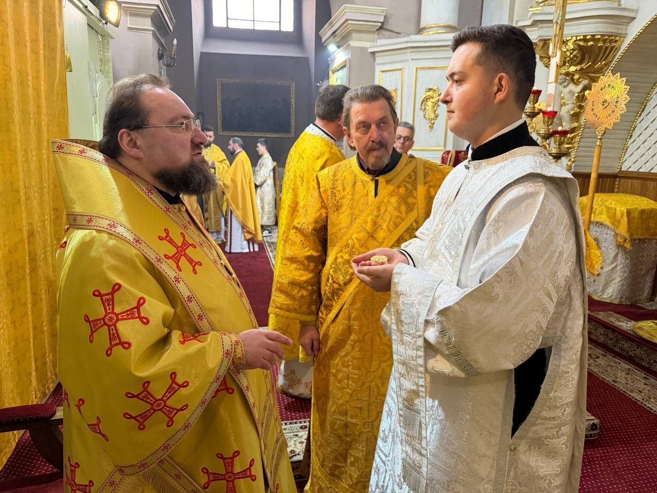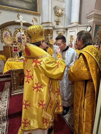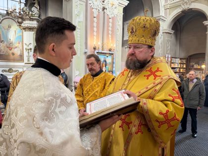 За Божественною Літургією Його Високопреосвященство звершив дияконську хіротонію над випускником ЛПБА Богданом Дармограєм.