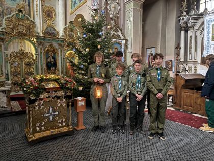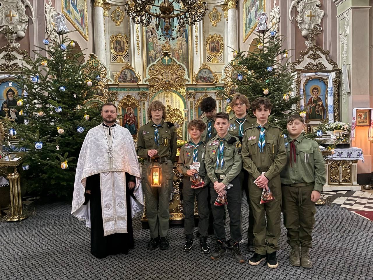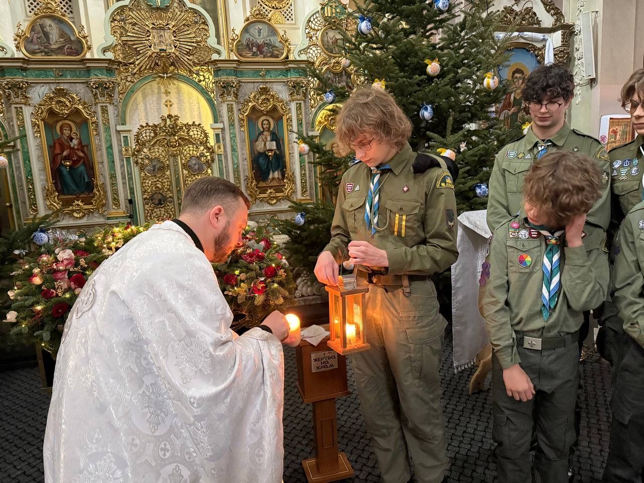 * Цього ж дня, після Божественної Літургії, до храму завітали пластуни, які урочисто принесли Вифлеємський вогонь миру. Ключар кафедрального собору, протоієрей Михаїл Сивак радо зустрів молодь, подякував їм за цю благородну місію та подарував кожному солодкий подарунок на згадку про цю зворушливу подію.