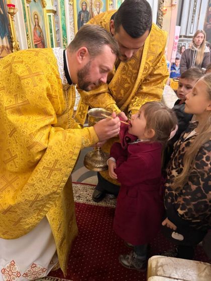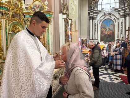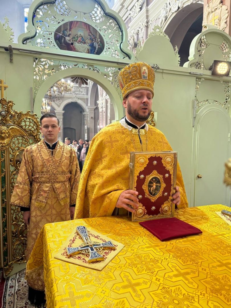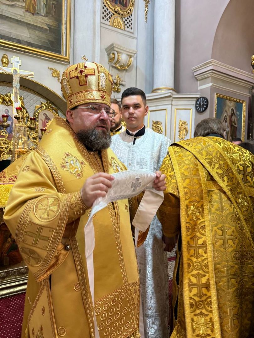 Насамкінець Архієрей наділив архіпастирським благословенням учасників богослужіння, після цього традиційно новорукопокладений пресвітер Віталій Цюпа подавав до цілування хрест, приймаючи вітання та благословляючи вірян.