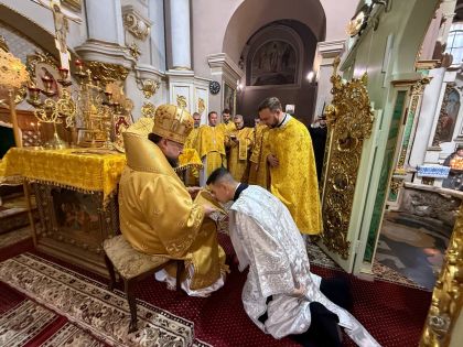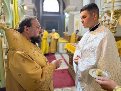 За Божественною Літургією Його Високопреосвященство звершив священичу хіротонію над студентом ЛПБА, дияконом Віталієм Цюпою.