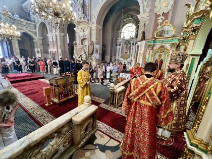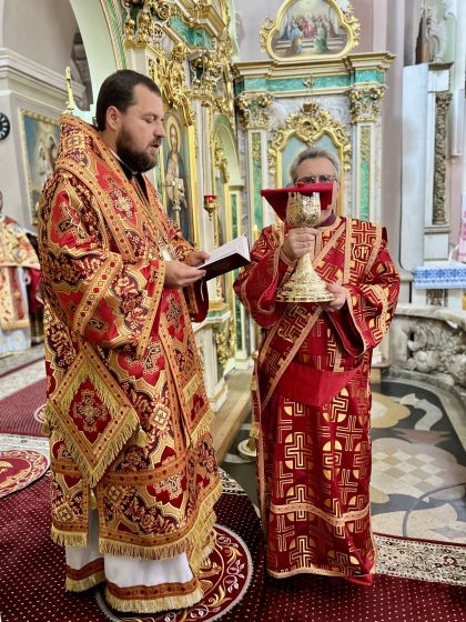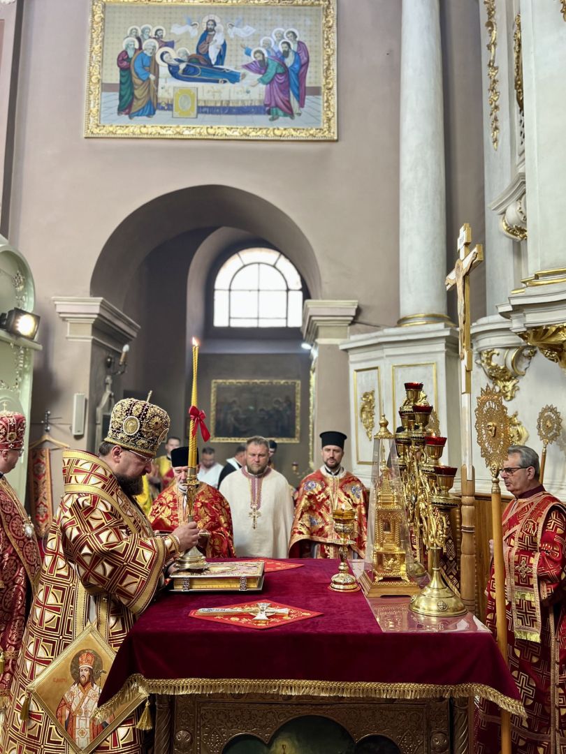 Оскільки цього дня згідно уставу звершується відання свята Воздвиження, то після молебню митрополит Димитрій вклонився Чесному Хресту Господньому та переніс його зі середини храму на престіл.