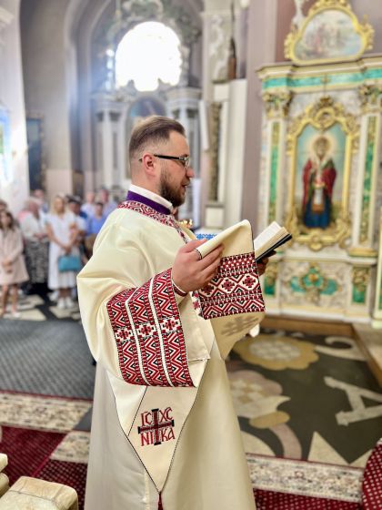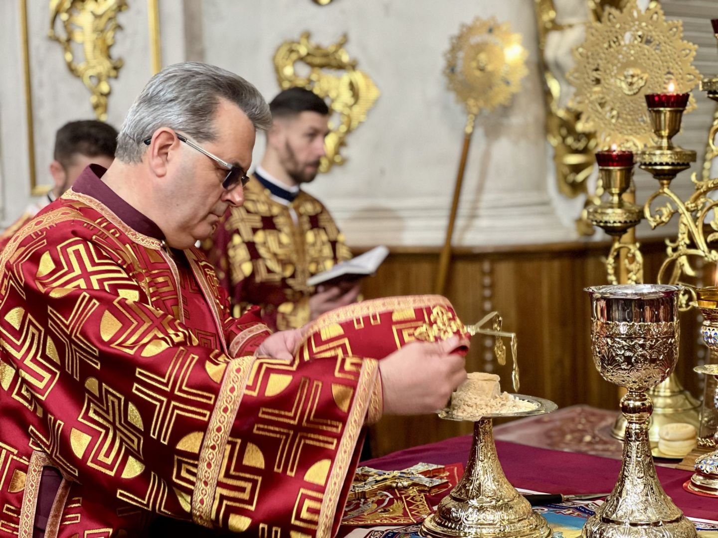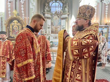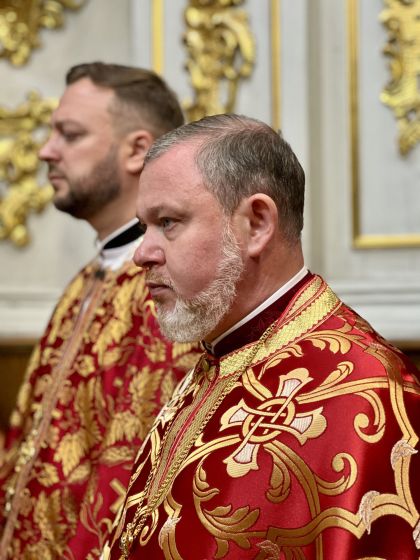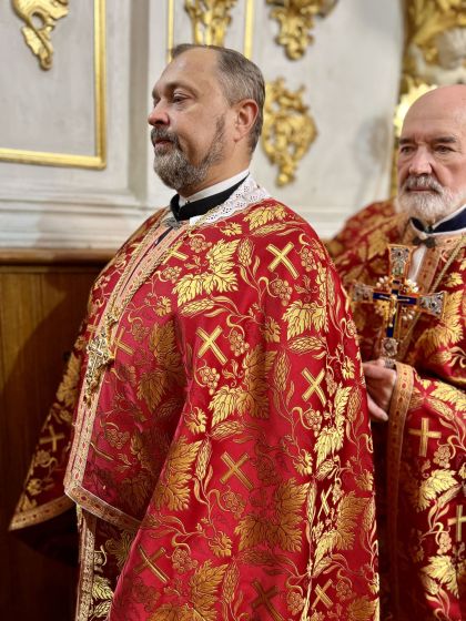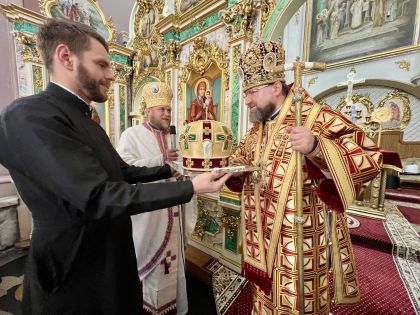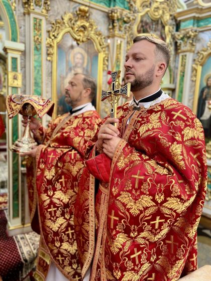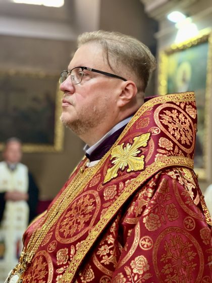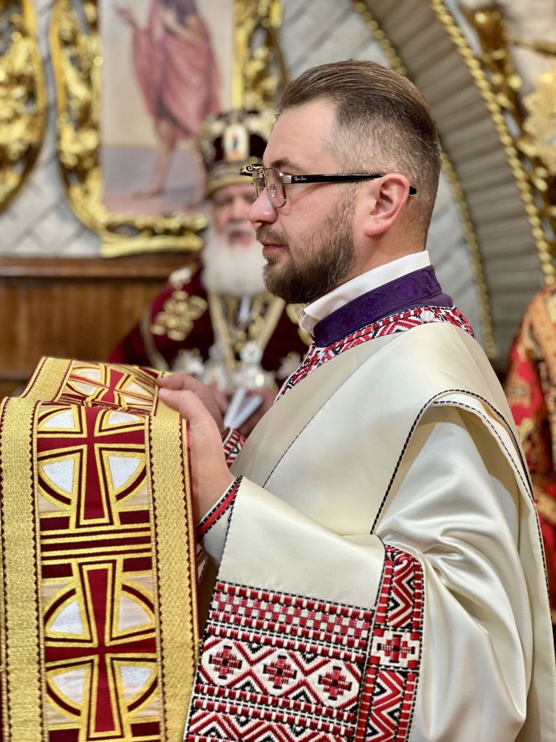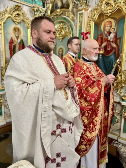 На малому вході Владика Димитрій звершив урочисте нагородження диякона Богдана Гроха правом носіння подвійного ораря.
