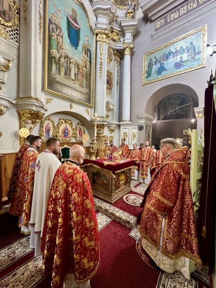 По завершенні Літургії духовенство звершило молебень до святителя Димитрія Ростовського перед його чесною іконою.