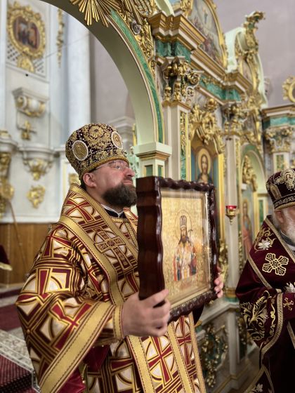 Після всіх уставних богослужінь до очільника єпархії зі словами привітань звернувся митрополит Макарій та подарував йому ікону святителя Димитрія Туптала, митрополита Ростовського.