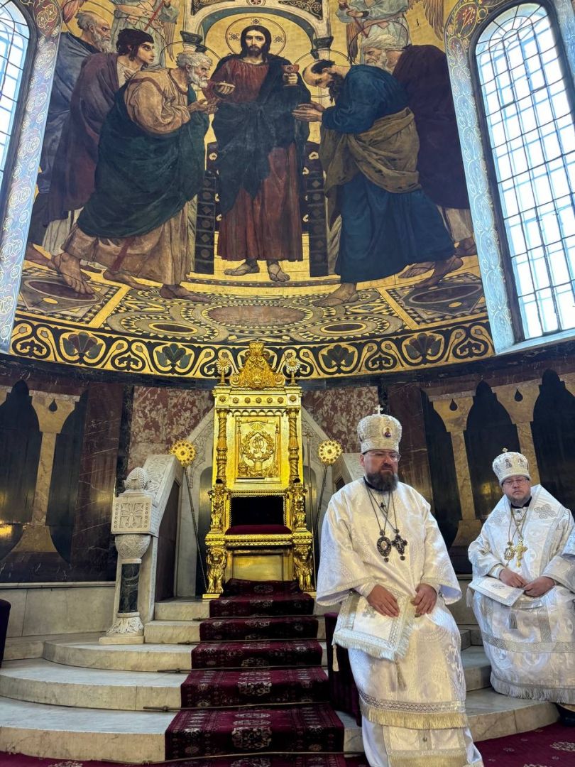 За відправою Владиці Димитрію співслужили: архієпископ Володимирський і Нововолинський Матфей, архієпископ Одеський і Балтський Афанасій, єпископ Запорізький і Мелітопольський Фотій, єпископ Ужгородський і Закарпатський Варсонофій, а також духовенство собору та інших єпархій.