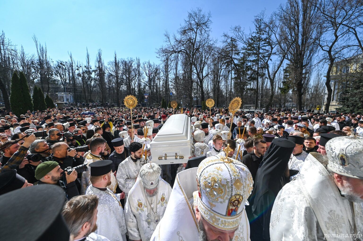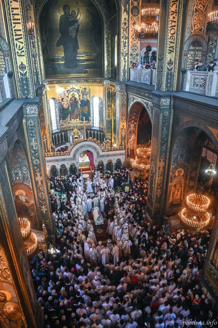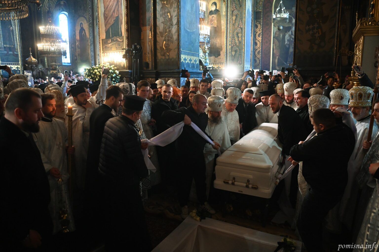 Після літургії до собору прибула жалобна процесія з тілом Святійшого Патріарха Філарета. Перед цим на Софійській площі столиці, де зупинялася процесія, було звершено літію за Його Святістю.