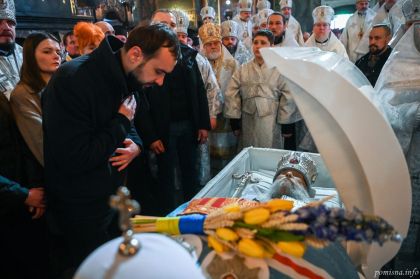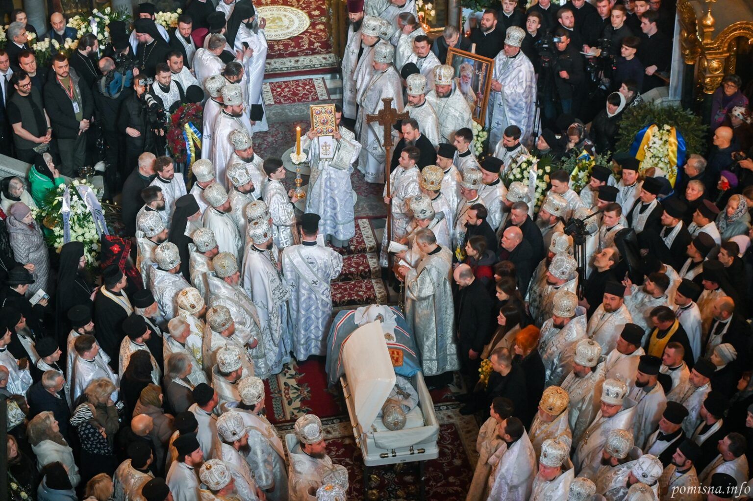 Разом із Предстоятелем Православної Церкви України молилися єпископи та священники з усієї України, духовенство собору на чолі з настоятелем – протоієреєм Борисом Табачеком, а також численні віряни, які прийшли попрощатися з Його Святістю.