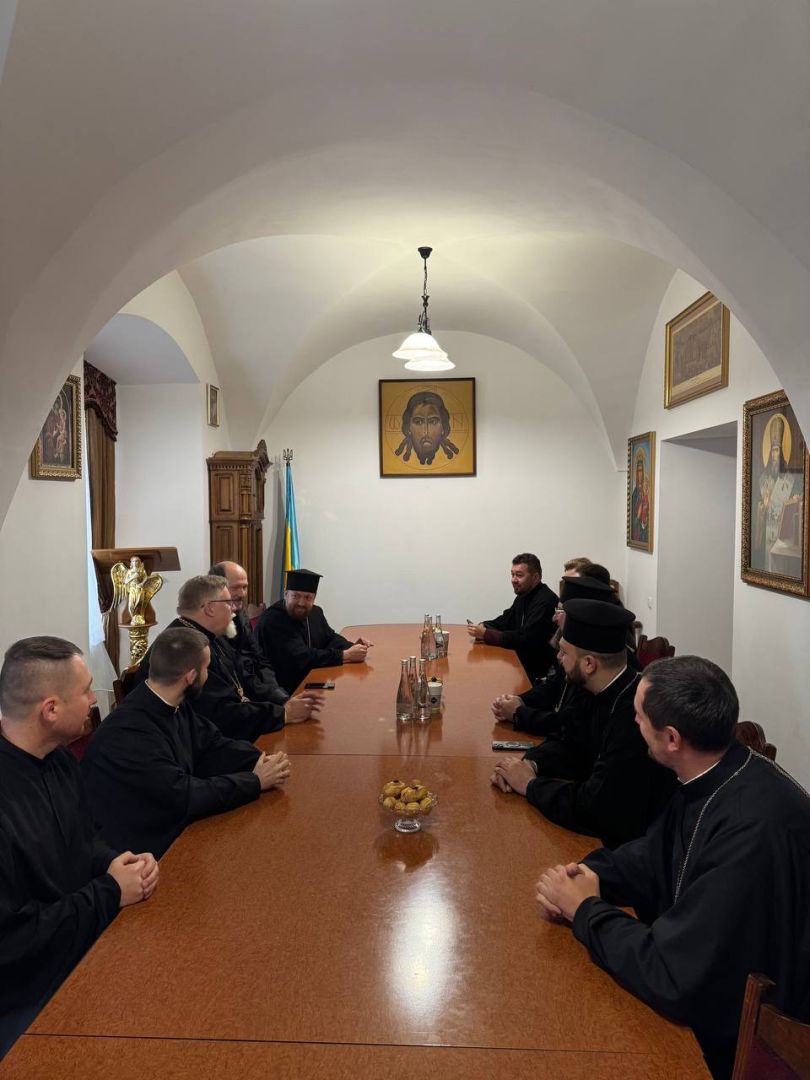 За кавою в єпархіальному управлінні глава Православної церкви Фінляндії Митрополит Елія з супроводжуючими особами та Митрополит Димитрій з кліром мали тепле спілкування, в якому піднімалися різноманітні питання з життя та історії Православної Церкви Фінляндії та Львівсько-Сокальської єпархії ПЦУ.