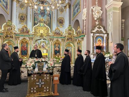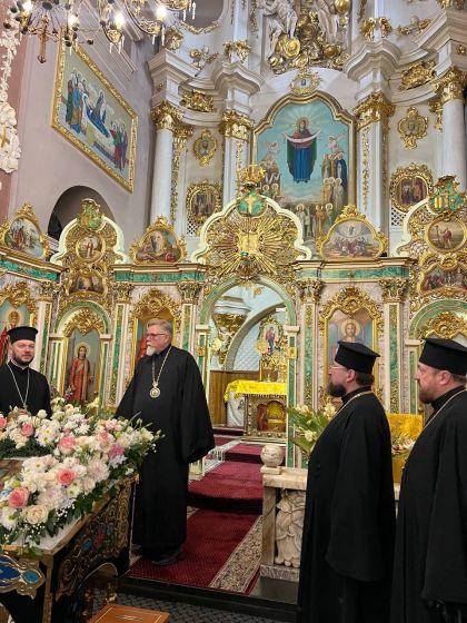 Митрополит Елія вклонився престолу та вислухав коротеньку екскурсію про історію кафедрального собору, яку виголосив протоієрей Михайло Сивак.